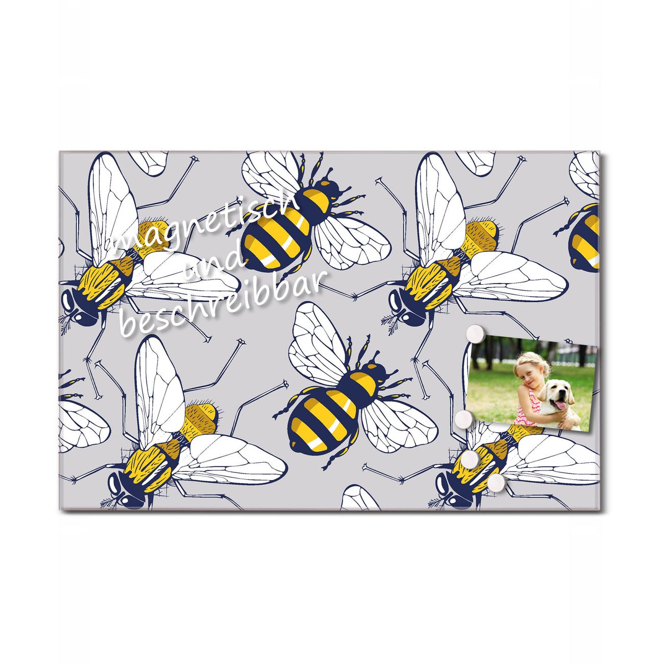 Die banjado Glas Küchenrückwand in verschiedenen Größen mit Motiv Fliegen und Bienen schützt Ihre Küchenfliesen vor Fettspritzern oder Wasserflecken. Der Spritzschutz ist gleichzeitig magnetisch und hält Ihre Rezepte oder Einkaufslisten. 4 Neodym-Magnete und 1 Kreidestift liegen bereits bei. Leuchtende Motive und hochwertiges Material machen den Spritzschutz zum Designobjekt. Das dekorative Glasbild gibt Ihrer Küche ein individuelles Erscheinungsbild. Abgerundete Kanten und Sicherheitsglas sorgen für einen sicheren Einsatz.