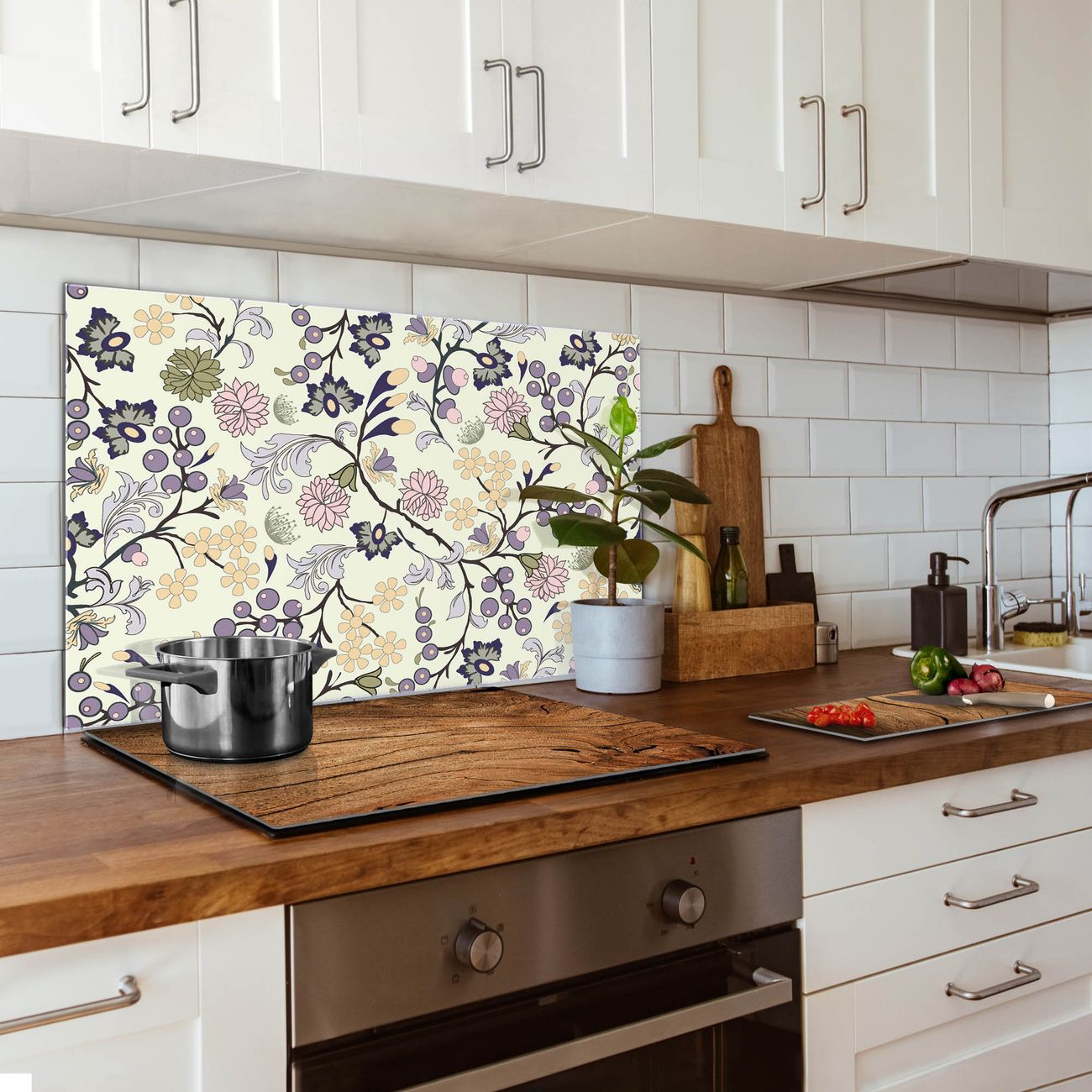 Küchenrückwand Glas Motiv Florale Tapete