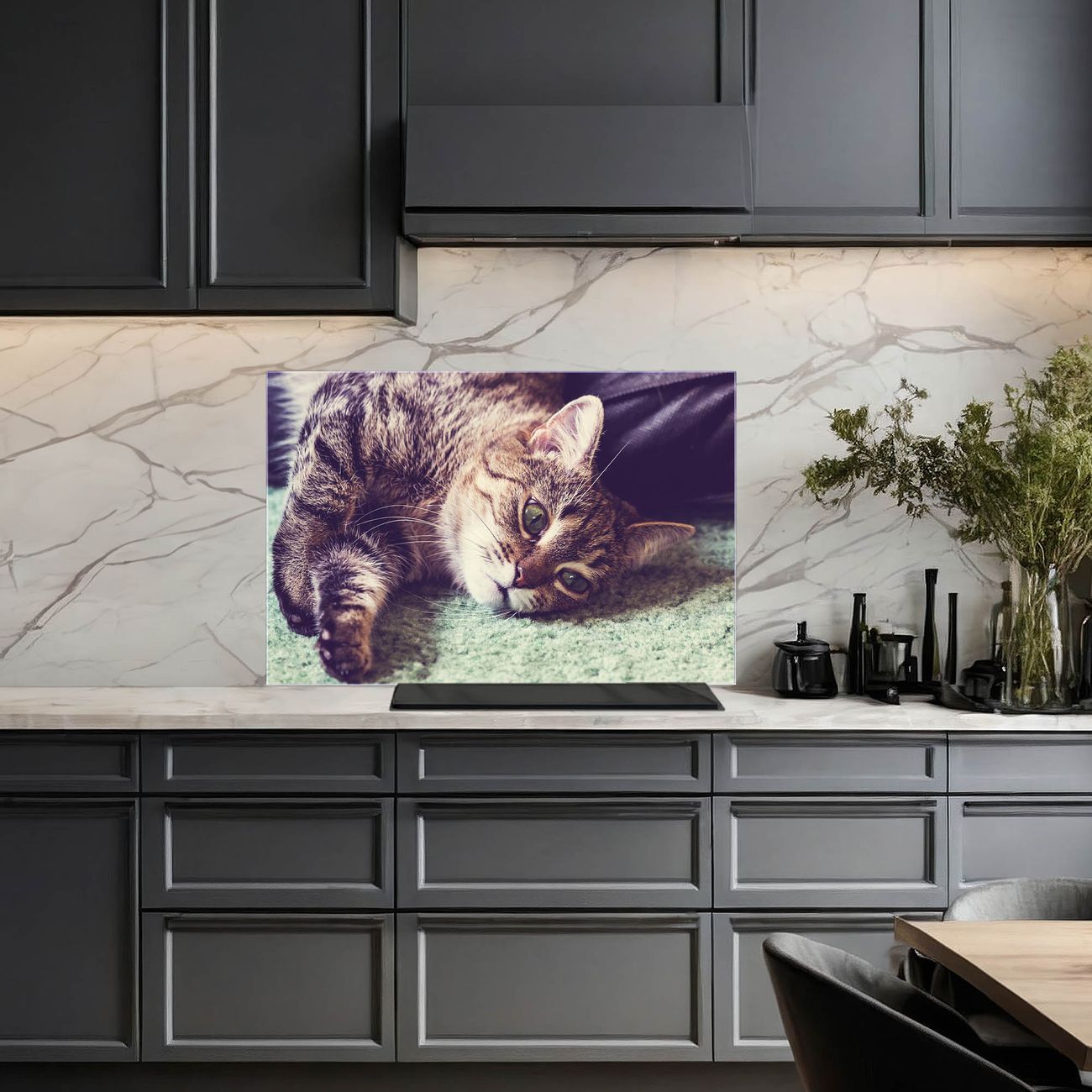 Die Küchenrückwand ist eine elegante Mehrzwecktafel: als Spritzschutz hinter Herd oder Waschbecken, hält Notizen wie ein Memoboard, ist beschreibbar mit Kreidestiften oder Whiteboard-Markern, sieht umwerfend als Glasbild aus. Sie besteht aus gehärtetem Glas, die Rückwand aus einem magnetischen Stahlblech. Durch die superflache Bauweise haben Sie die Wahl aus einer Vielzahl von Befestigungsmöglichkeiten. Sie können die Küchenrückwand mit einem Montagekleber superflach an die Wand kleben oder Sie wählen eines unserer passenden Befestigungssets, welches eine optimale Montage garantiert. Die Küchenrückwand besteht aus zertifiziertem Sicherheitsglas. Durch die mitgelieferten 4 Neodym-Magnete ist Ihre Glas Magnettafel sofort einsatzbereit.