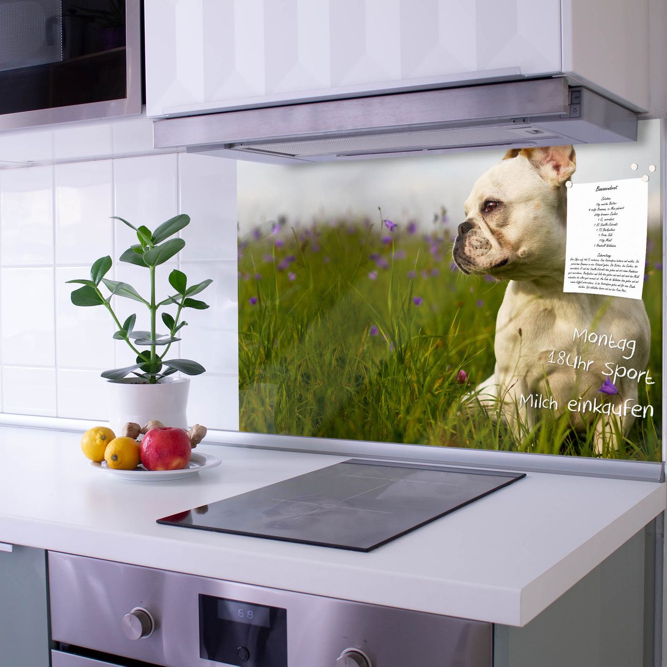 Die banjado Glas Küchenrückwand in verschiedenen Größen mit Motiv Französische Bulldogge schützt Ihre Küchenfliesen vor Fettspritzern oder Wasserflecken. Der Spritzschutz ist gleichzeitig magnetisch und hält Ihre Rezepte oder Einkaufslisten. 4 Neodym-Magnete und 1 Kreidestift liegen bereits bei. Leuchtende Motive und hochwertiges Material machen den Spritzschutz zum Designobjekt. Das dekorative Glasbild gibt Ihrer Küche ein individuelles Erscheinungsbild. Abgerundete Kanten und Sicherheitsglas sorgen für einen sicheren Einsatz.