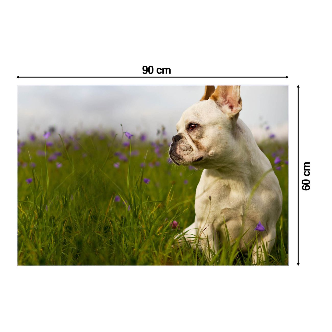 Material  4mm Sicherheitsglas mit Metallrückwand Eigenschaften  beschreibbar, magnetisch, kratzfest Maße  60x90x0,6cm, 8,1 kg schwer Motiv  Nummer 10511 Französische Bulldogge Zubehör  inklusive 4 Neodym-Magnete