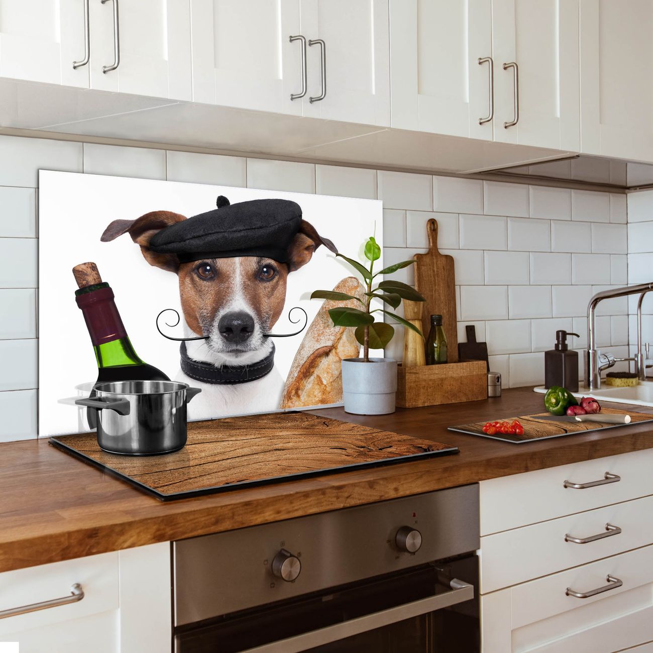 Küchenrückwand Glas Motiv Franzose Jack Russel