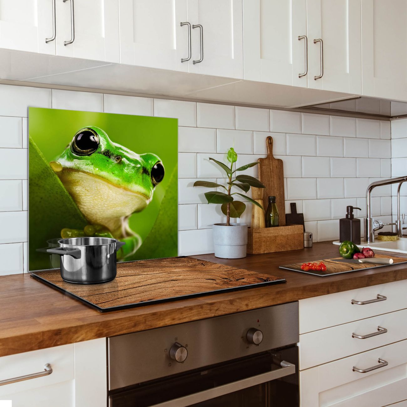 Die banjado Glas Küchenrückwand in verschiedenen Größen mit Motiv Frosch schützt Ihre Küchenfliesen vor Fettspritzern oder Wasserflecken. Der Spritzschutz ist gleichzeitig magnetisch und hält Ihre Rezepte oder Einkaufslisten. 4 Neodym-Magnete und 1 Kreidestift liegen bereits bei. Leuchtende Motive und hochwertiges Material machen den Spritzschutz zum Designobjekt. Das dekorative Glasbild gibt Ihrer Küche ein individuelles Erscheinungsbild. Abgerundete Kanten und Sicherheitsglas sorgen für einen sicheren Einsatz.