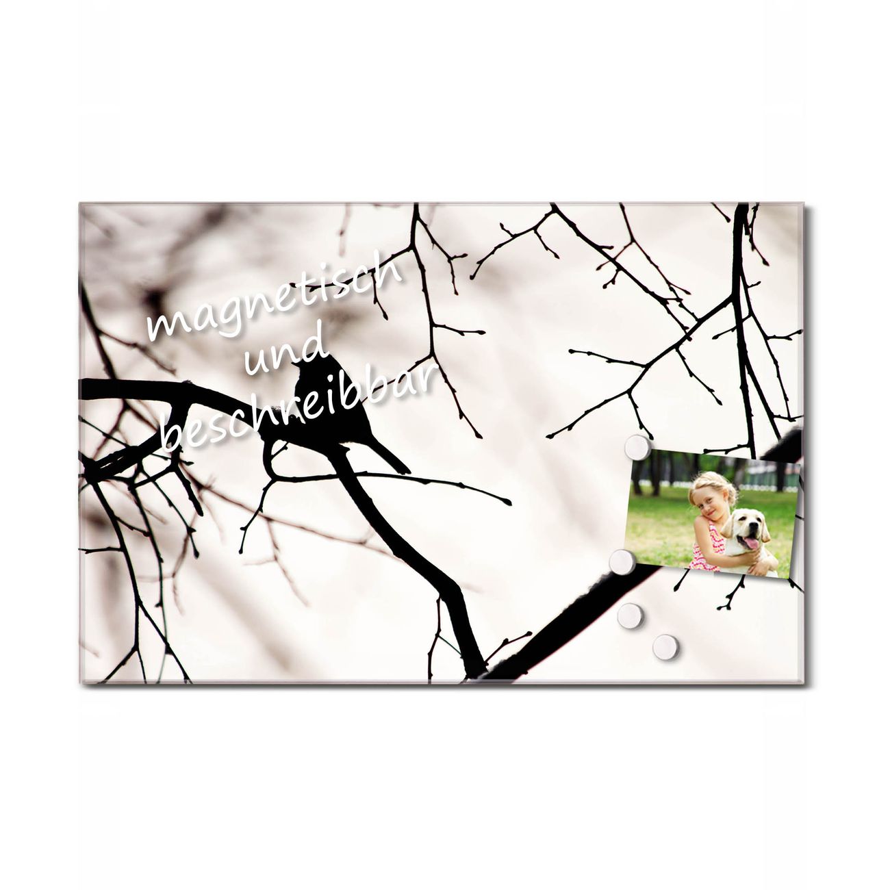 Bitte beachten Sie, dass ausschließlich spezielle Magnete an der Glastafel haften! Wir empfehlen banjado Neodym Magnete, diese sind durch uns auf Wirksamkeit geprüft.