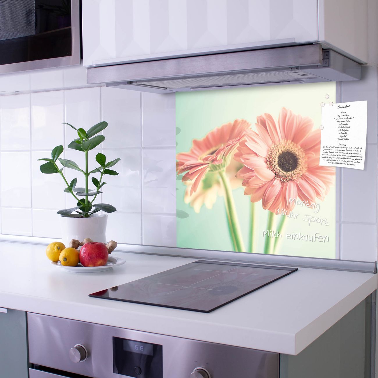 Die Küchenrückwand ist eine elegante Mehrzwecktafel: als Spritzschutz hinter Herd oder Waschbecken, hält Notizen wie ein Memoboard, ist beschreibbar mit Kreidestiften oder Whiteboard-Markern, sieht umwerfend als Glasbild aus. Sie besteht aus gehärtetem Glas, die Rückwand aus einem magnetischen Stahlblech. Durch die superflache Bauweise haben Sie die Wahl aus einer Vielzahl von Befestigungsmöglichkeiten. Sie können die Küchenrückwand mit einem Montagekleber superflach an die Wand kleben oder Sie wählen eines unserer passenden Befestigungssets, welches eine optimale Montage garantiert. Die Küchenrückwand besteht aus zertifiziertem Sicherheitsglas. Durch die mitgelieferten 4 Neodym-Magnete ist Ihre Glas Magnettafel sofort einsatzbereit.