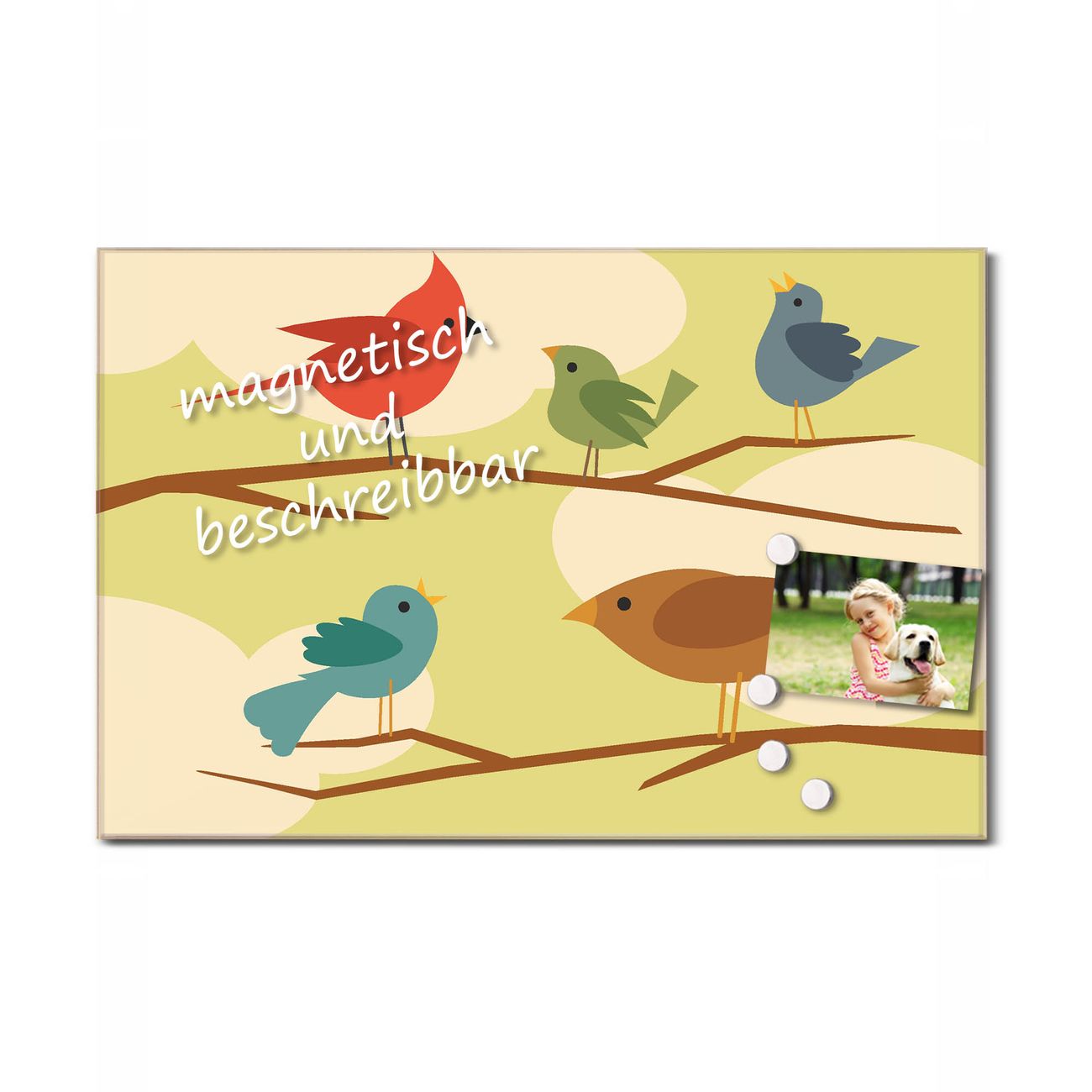 Bitte beachten Sie, dass ausschließlich spezielle Magnete an der Glastafel haften! Wir empfehlen banjado Neodym Magnete, diese sind durch uns auf Wirksamkeit geprüft.