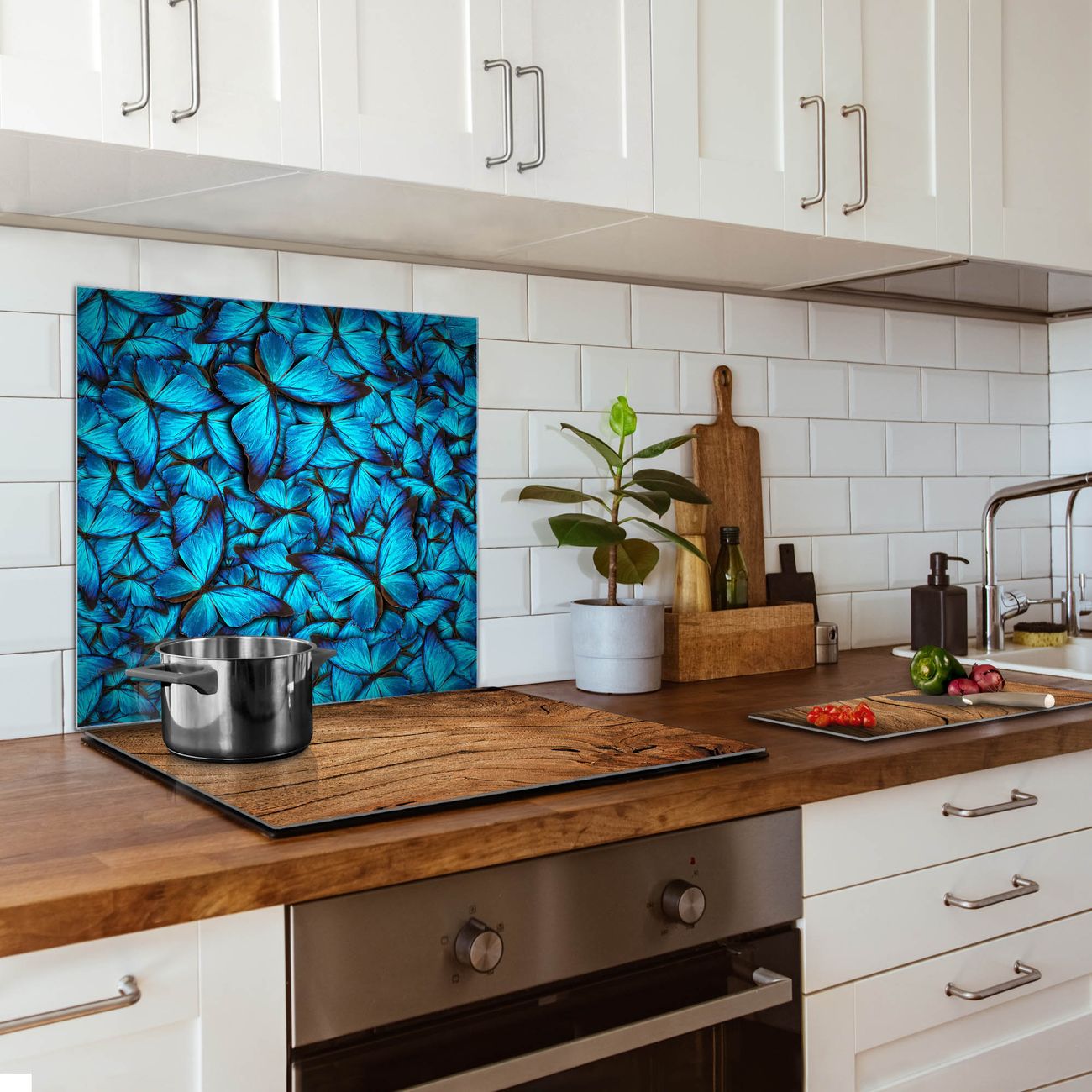Die banjado Glas Küchenrückwand in verschiedenen Größen mit Motiv Fürstliche Falter schützt Ihre Küchenfliesen vor Fettspritzern oder Wasserflecken. Der Spritzschutz ist gleichzeitig magnetisch und hält Ihre Rezepte oder Einkaufslisten. 4 Neodym-Magnete und 1 Kreidestift liegen bereits bei. Leuchtende Motive und hochwertiges Material machen den Spritzschutz zum Designobjekt. Das dekorative Glasbild gibt Ihrer Küche ein individuelles Erscheinungsbild. Abgerundete Kanten und Sicherheitsglas sorgen für einen sicheren Einsatz.