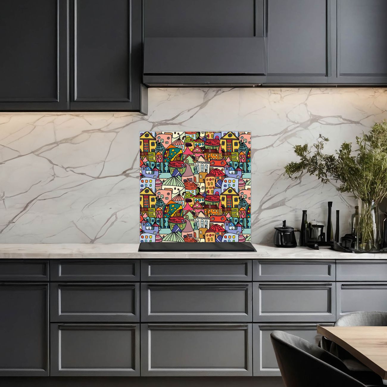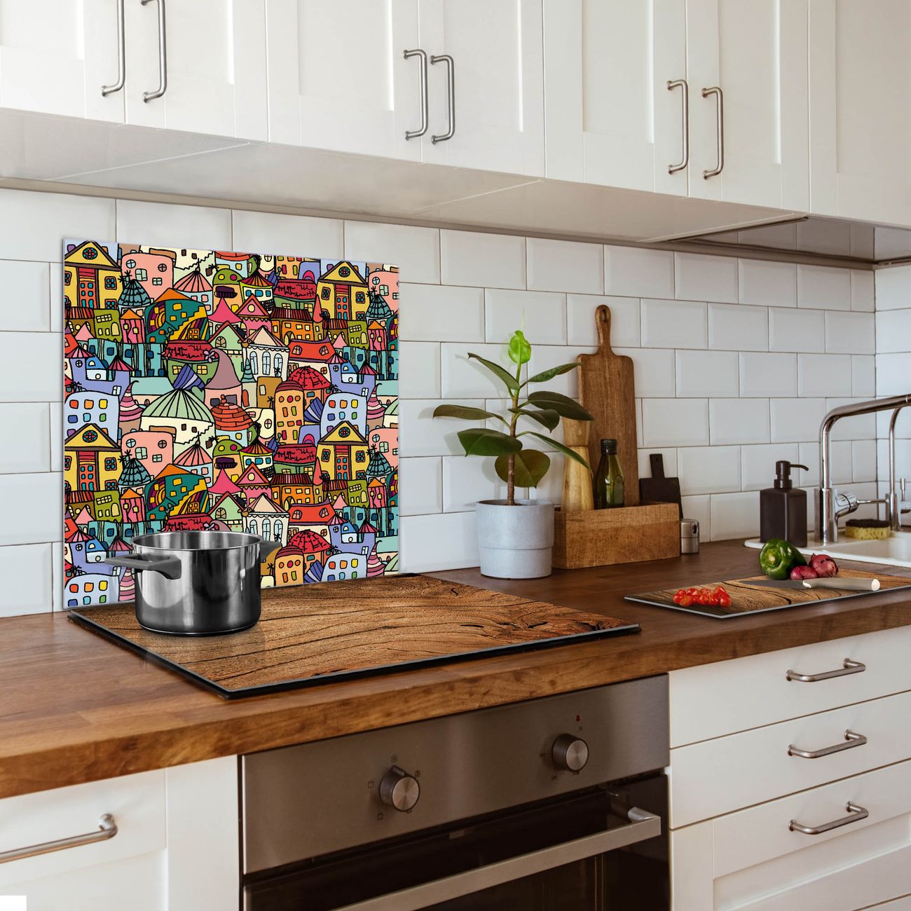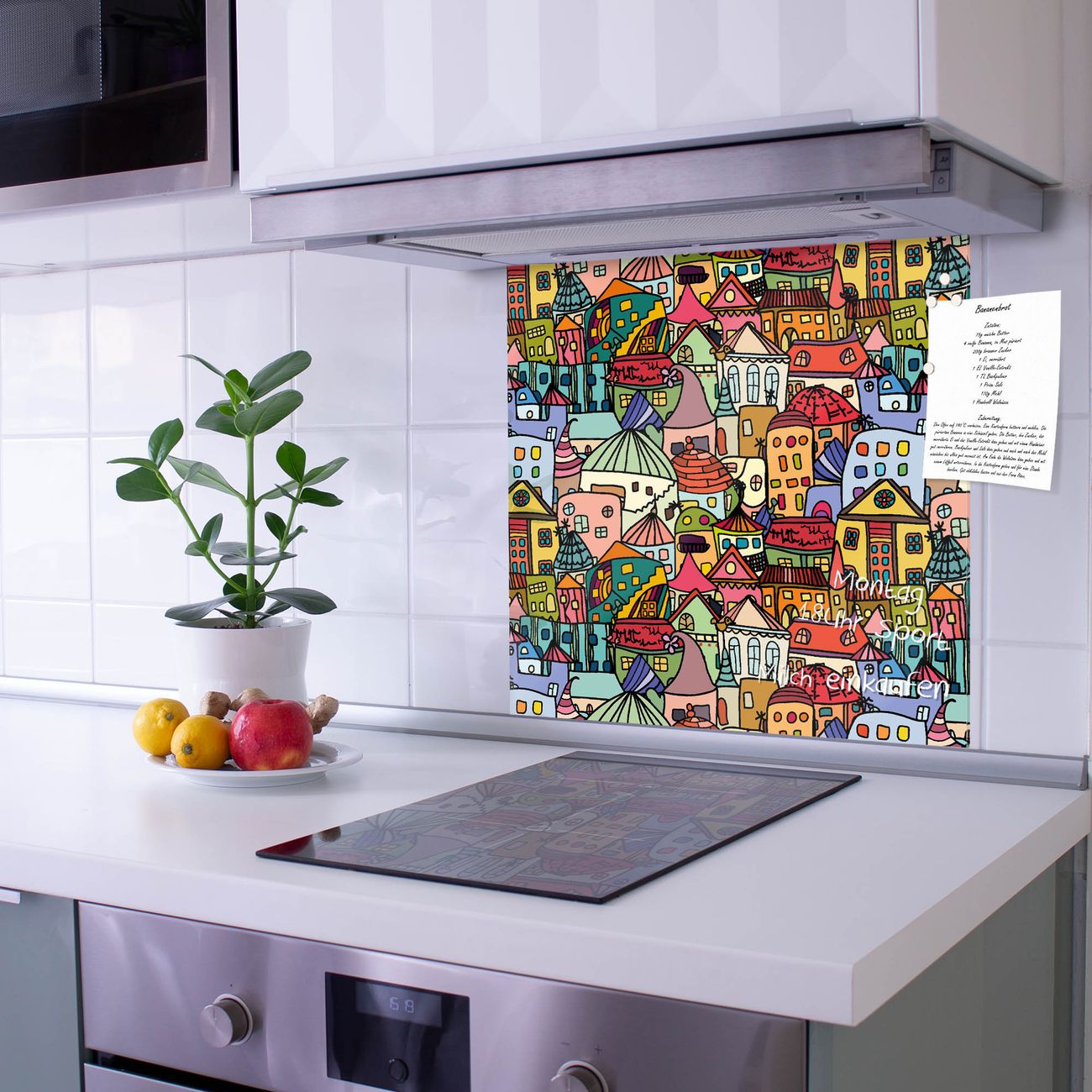 Die banjado Glas Küchenrückwand in verschiedenen Größen mit Motiv Funky Town schützt Ihre Küchenfliesen vor Fettspritzern oder Wasserflecken. Der Spritzschutz ist gleichzeitig magnetisch und hält Ihre Rezepte oder Einkaufslisten. 4 Neodym-Magnete und 1 Kreidestift liegen bereits bei. Leuchtende Motive und hochwertiges Material machen den Spritzschutz zum Designobjekt. Das dekorative Glasbild gibt Ihrer Küche ein individuelles Erscheinungsbild. Abgerundete Kanten und Sicherheitsglas sorgen für einen sicheren Einsatz.