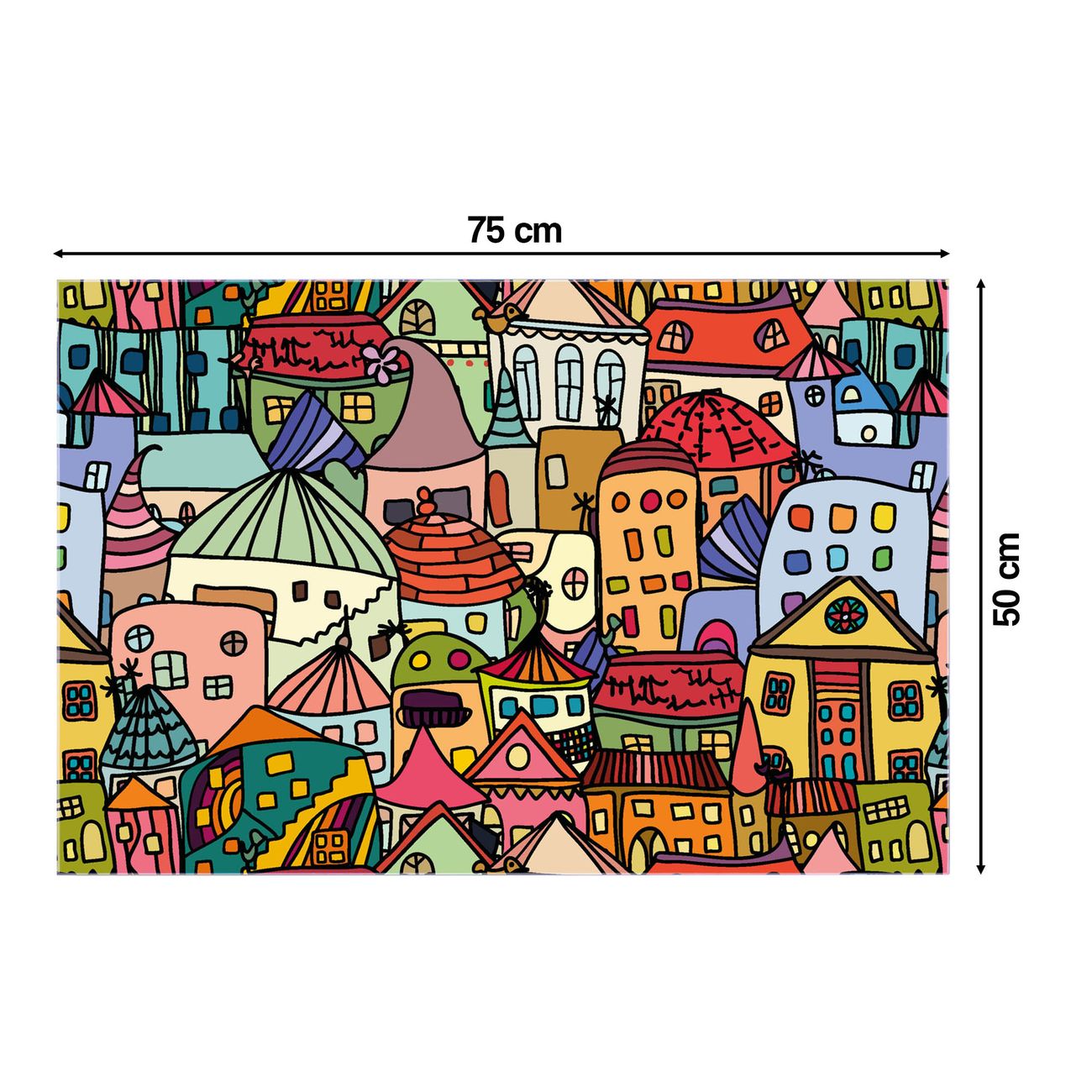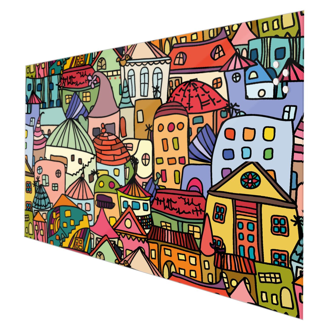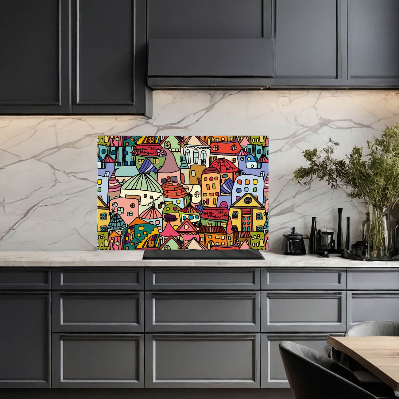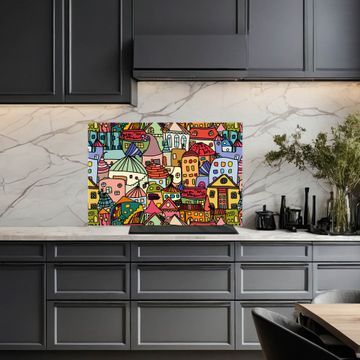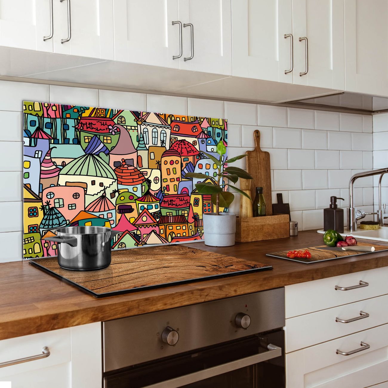 Die banjado Glas Küchenrückwand in verschiedenen Größen mit Motiv Funky Town schützt Ihre Küchenfliesen vor Fettspritzern oder Wasserflecken. Der Spritzschutz ist gleichzeitig magnetisch und hält Ihre Rezepte oder Einkaufslisten. 4 Neodym-Magnete und 1 Kreidestift liegen bereits bei. Leuchtende Motive und hochwertiges Material machen den Spritzschutz zum Designobjekt. Das dekorative Glasbild gibt Ihrer Küche ein individuelles Erscheinungsbild. Abgerundete Kanten und Sicherheitsglas sorgen für einen sicheren Einsatz.