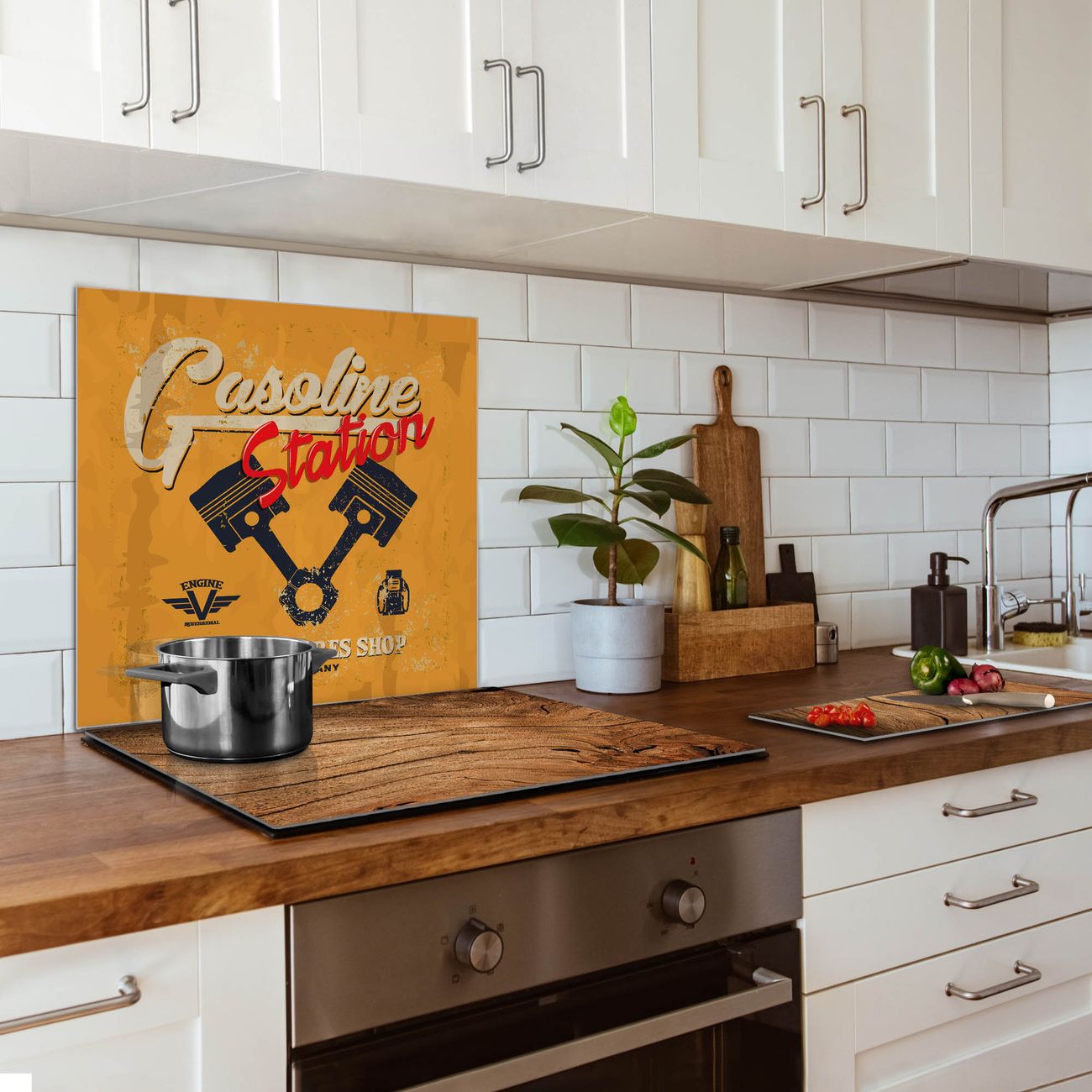 Küchenrückwand Glas Motiv Gasoline Station