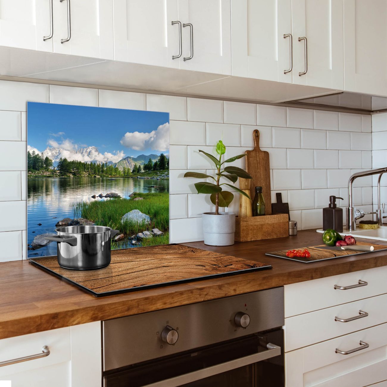 Die banjado Glas Küchenrückwand in verschiedenen Größen mit Motiv Gebirgssee schützt Ihre Küchenfliesen vor Fettspritzern oder Wasserflecken. Der Spritzschutz ist gleichzeitig magnetisch und hält Ihre Rezepte oder Einkaufslisten. 4 Neodym-Magnete und 1 Kreidestift liegen bereits bei. Leuchtende Motive und hochwertiges Material machen den Spritzschutz zum Designobjekt. Das dekorative Glasbild gibt Ihrer Küche ein individuelles Erscheinungsbild. Abgerundete Kanten und Sicherheitsglas sorgen für einen sicheren Einsatz.