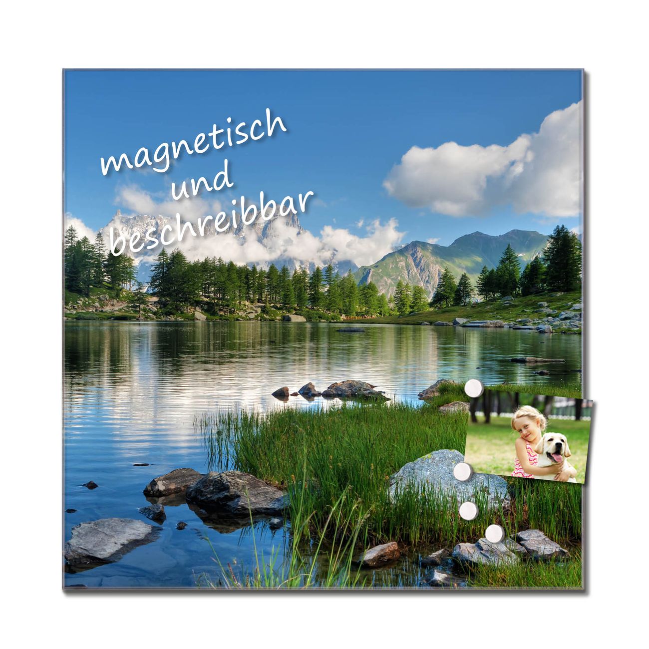 Bitte beachten Sie, dass ausschließlich spezielle Magnete an der Glastafel haften! Wir empfehlen banjado Neodym Magnete, diese sind durch uns auf Wirksamkeit geprüft.