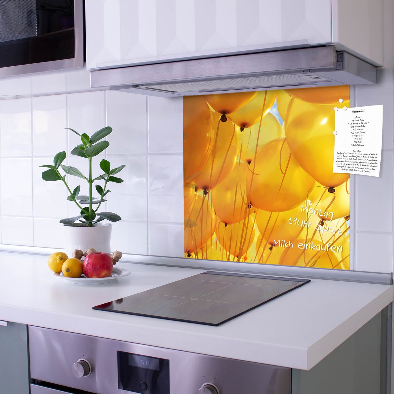Die banjado Glas Küchenrückwand in verschiedenen Größen mit Motiv Gelbe Luftballons schützt Ihre Küchenfliesen vor Fettspritzern oder Wasserflecken. Der Spritzschutz ist gleichzeitig magnetisch und hält Ihre Rezepte oder Einkaufslisten. 4 Neodym-Magnete und 1 Kreidestift liegen bereits bei. Leuchtende Motive und hochwertiges Material machen den Spritzschutz zum Designobjekt. Das dekorative Glasbild gibt Ihrer Küche ein individuelles Erscheinungsbild. Abgerundete Kanten und Sicherheitsglas sorgen für einen sicheren Einsatz.