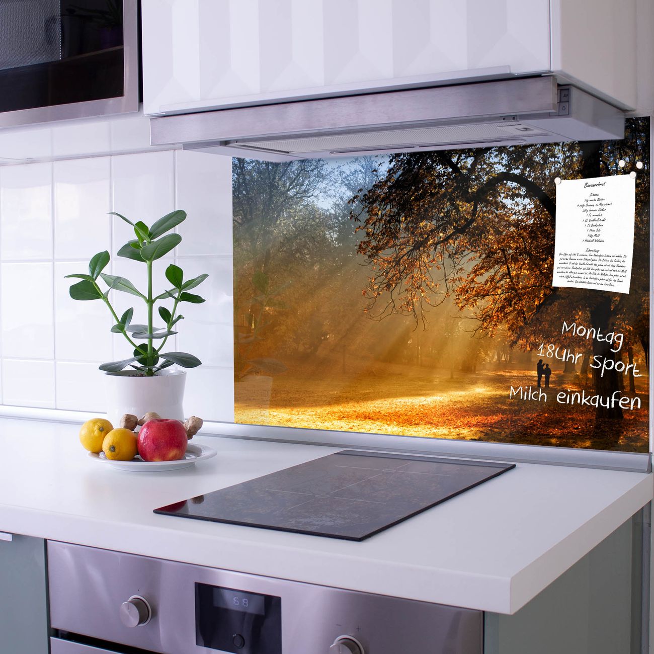 Die banjado Glas Küchenrückwand in verschiedenen Größen mit Motiv Goldener Herbst schützt Ihre Küchenfliesen vor Fettspritzern oder Wasserflecken. Der Spritzschutz ist gleichzeitig magnetisch und hält Ihre Rezepte oder Einkaufslisten. 4 Neodym-Magnete und 1 Kreidestift liegen bereits bei. Leuchtende Motive und hochwertiges Material machen den Spritzschutz zum Designobjekt. Das dekorative Glasbild gibt Ihrer Küche ein individuelles Erscheinungsbild. Abgerundete Kanten und Sicherheitsglas sorgen für einen sicheren Einsatz.