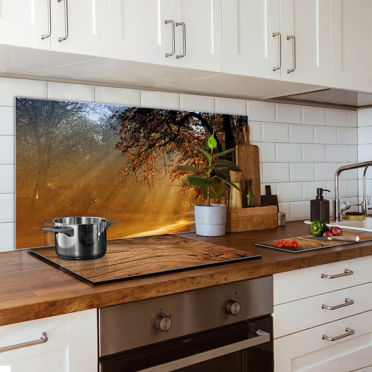 Die banjado Glas Küchenrückwand in verschiedenen Größen mit Motiv Goldener Herbst schützt Ihre Küchenfliesen vor Fettspritzern oder Wasserflecken. Der Spritzschutz ist gleichzeitig magnetisch und hält Ihre Rezepte oder Einkaufslisten. 4 Neodym-Magnete und 1 Kreidestift liegen bereits bei. Leuchtende Motive und hochwertiges Material machen den Spritzschutz zum Designobjekt. Das dekorative Glasbild gibt Ihrer Küche ein individuelles Erscheinungsbild. Abgerundete Kanten und Sicherheitsglas sorgen für einen sicheren Einsatz.