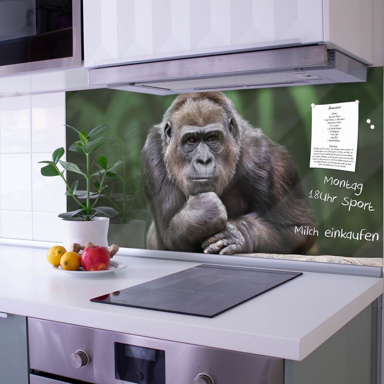Die banjado Glas Küchenrückwand in verschiedenen Größen mit Motiv Gorilla schützt Ihre Küchenfliesen vor Fettspritzern oder Wasserflecken. Der Spritzschutz ist gleichzeitig magnetisch und hält Ihre Rezepte oder Einkaufslisten. 4 Neodym-Magnete und 1 Kreidestift liegen bereits bei. Leuchtende Motive und hochwertiges Material machen den Spritzschutz zum Designobjekt. Das dekorative Glasbild gibt Ihrer Küche ein individuelles Erscheinungsbild. Abgerundete Kanten und Sicherheitsglas sorgen für einen sicheren Einsatz.