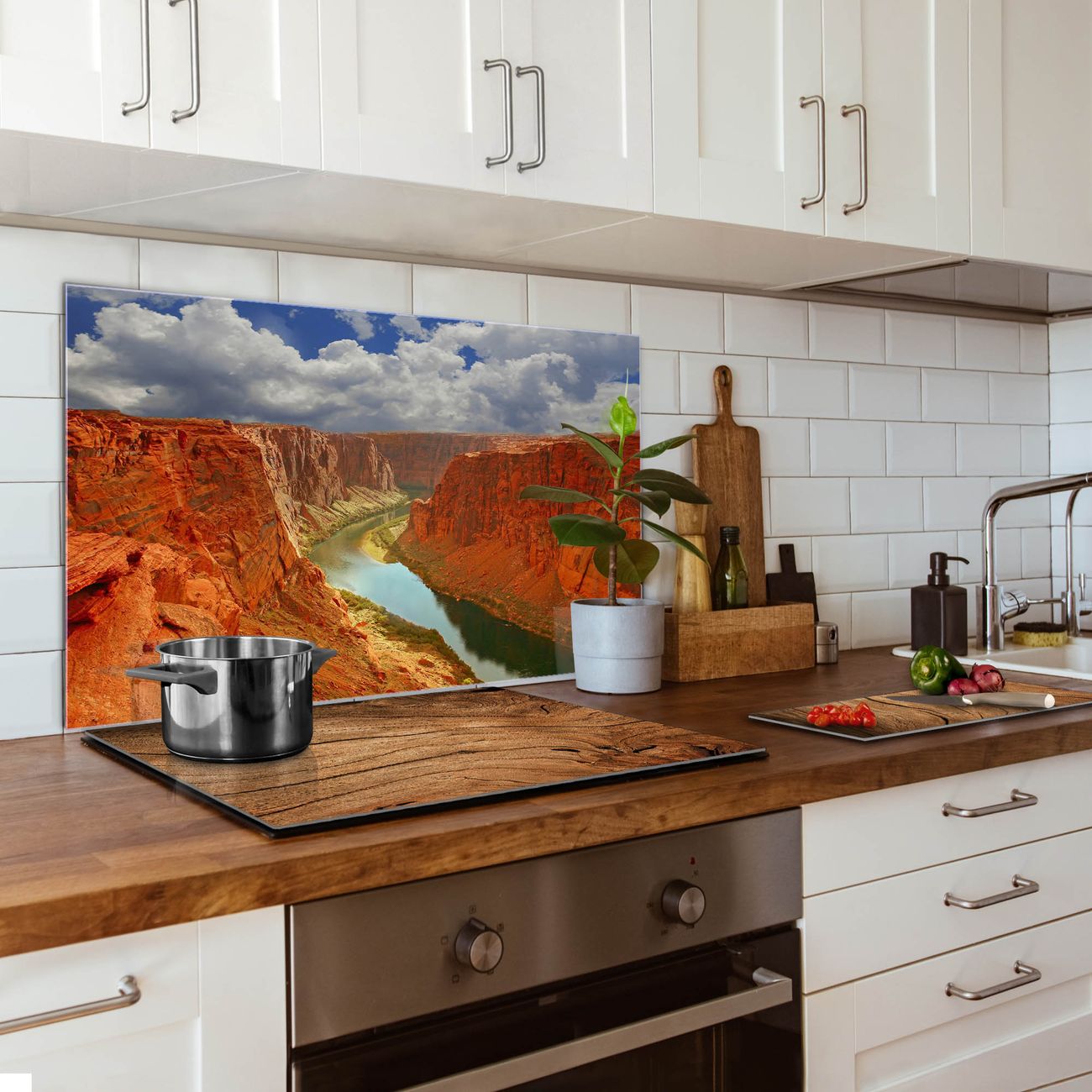 Die banjado Glas Küchenrückwand in verschiedenen Größen mit Motiv Grand Canyon schützt Ihre Küchenfliesen vor Fettspritzern oder Wasserflecken. Der Spritzschutz ist gleichzeitig magnetisch und hält Ihre Rezepte oder Einkaufslisten. 4 Neodym-Magnete und 1 Kreidestift liegen bereits bei. Leuchtende Motive und hochwertiges Material machen den Spritzschutz zum Designobjekt. Das dekorative Glasbild gibt Ihrer Küche ein individuelles Erscheinungsbild. Abgerundete Kanten und Sicherheitsglas sorgen für einen sicheren Einsatz.