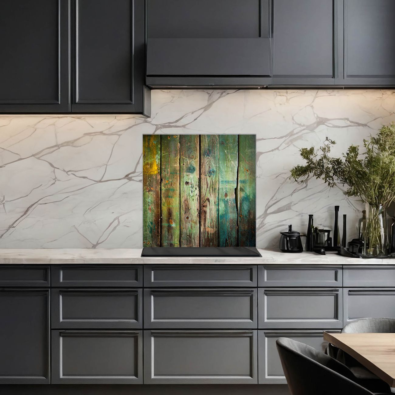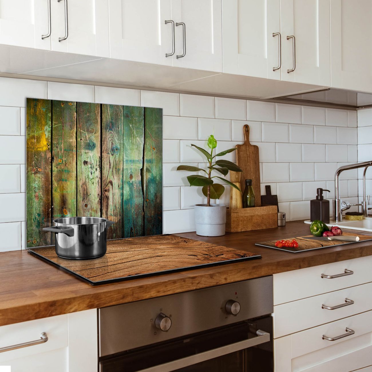 Küchenrückwand Glas Motiv Grünes Holz