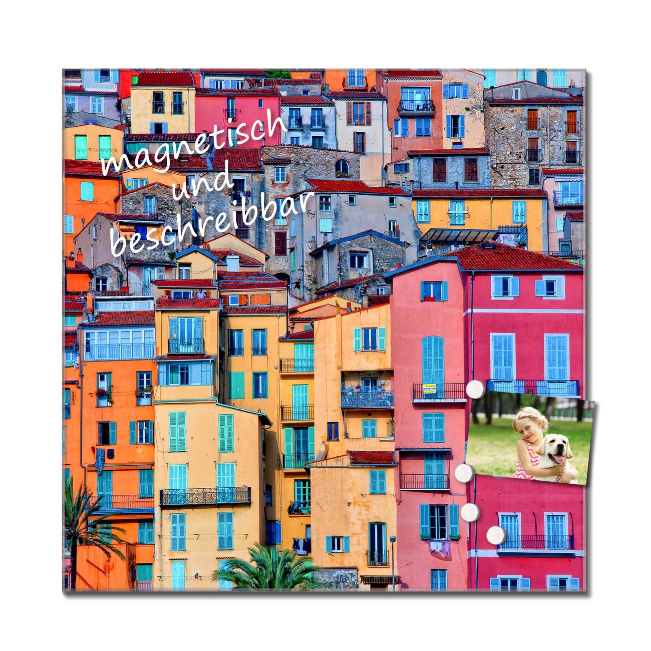 Die Küchenrückwand ist eine elegante Mehrzwecktafel: als Spritzschutz hinter Herd oder Waschbecken, hält Notizen wie ein Memoboard, ist beschreibbar mit Kreidestiften oder Whiteboard-Markern, sieht umwerfend als Glasbild aus. Sie besteht aus gehärtetem Glas, die Rückwand aus einem magnetischen Stahlblech. Durch die superflache Bauweise haben Sie die Wahl aus einer Vielzahl von Befestigungsmöglichkeiten. Sie können die Küchenrückwand mit einem Montagekleber superflach an die Wand kleben oder Sie wählen eines unserer passenden Befestigungssets, welches eine optimale Montage garantiert. Die Küchenrückwand besteht aus zertifiziertem Sicherheitsglas. Durch die mitgelieferten 4 Neodym-Magnete ist Ihre Glas Magnettafel sofort einsatzbereit.