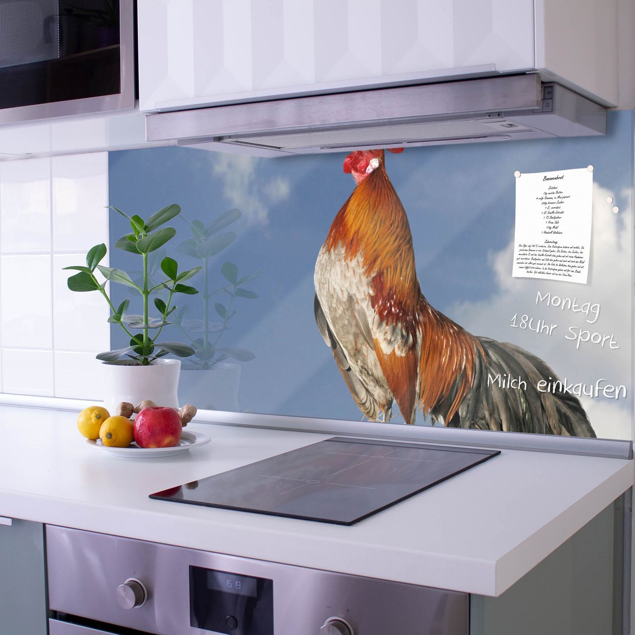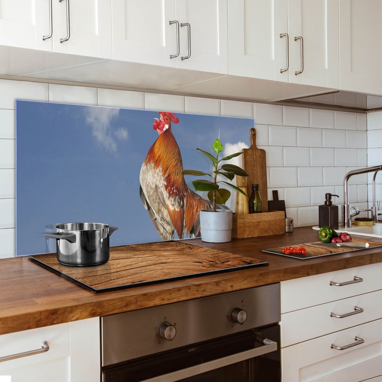 Küchenrückwand Glas Motiv Hahn