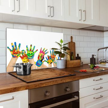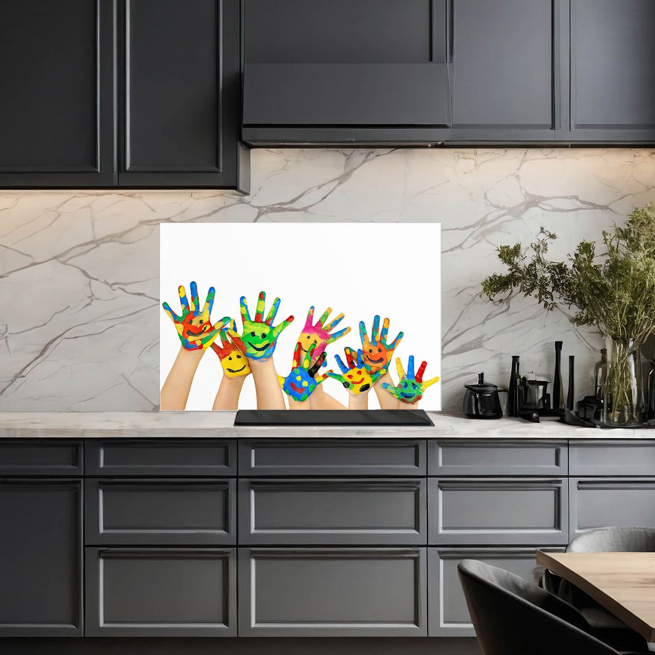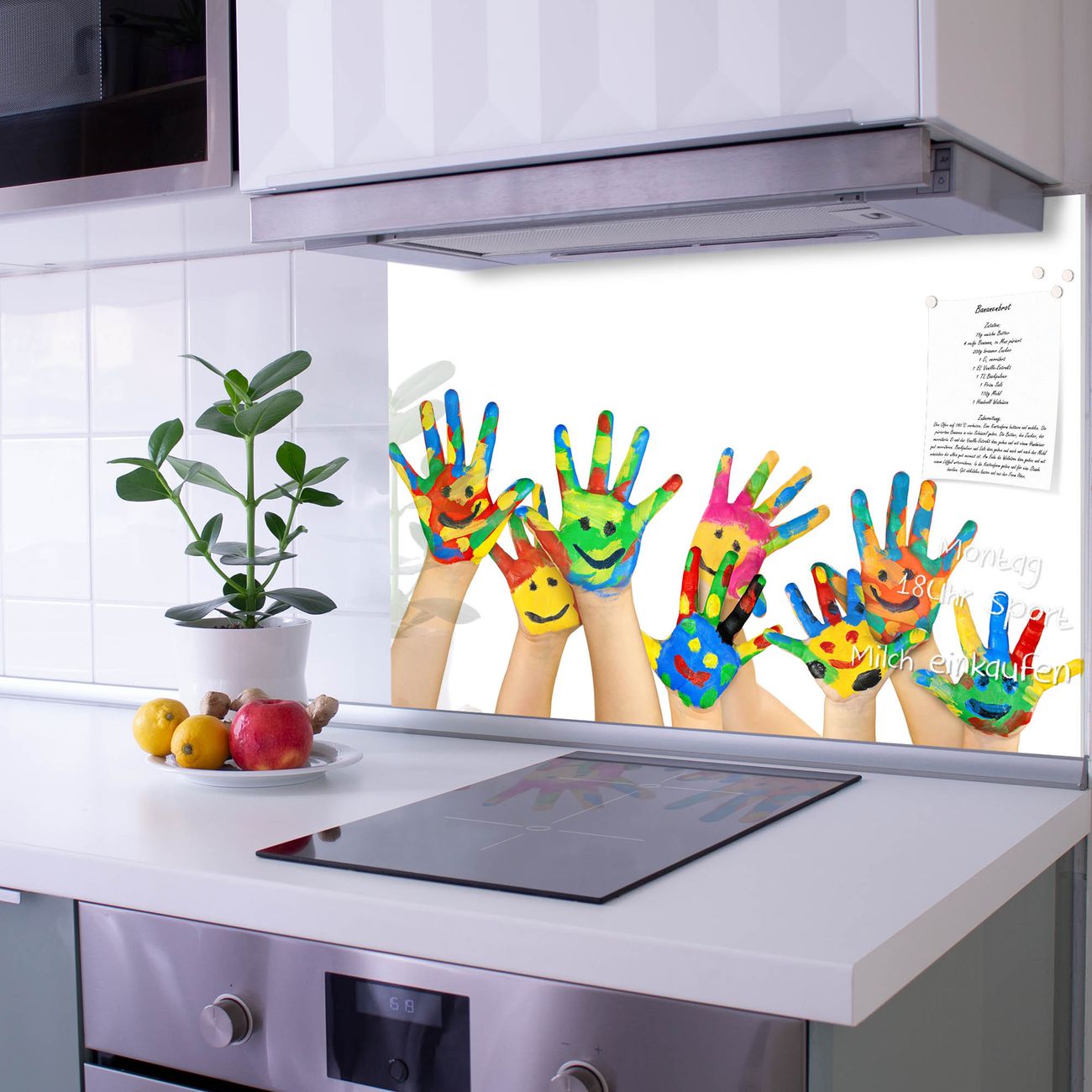 Die banjado Glas Küchenrückwand in verschiedenen Größen mit Motiv Happy Hands schützt Ihre Küchenfliesen vor Fettspritzern oder Wasserflecken. Der Spritzschutz ist gleichzeitig magnetisch und hält Ihre Rezepte oder Einkaufslisten. 4 Neodym-Magnete und 1 Kreidestift liegen bereits bei. Leuchtende Motive und hochwertiges Material machen den Spritzschutz zum Designobjekt. Das dekorative Glasbild gibt Ihrer Küche ein individuelles Erscheinungsbild. Abgerundete Kanten und Sicherheitsglas sorgen für einen sicheren Einsatz.