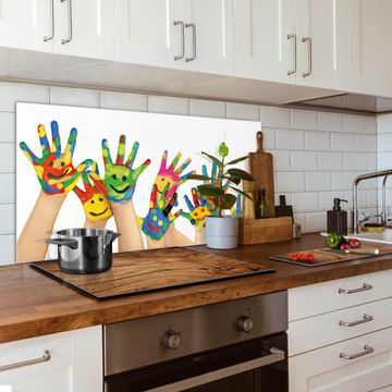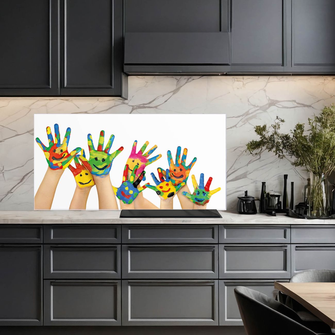 Die banjado Glas Küchenrückwand in verschiedenen Größen mit Motiv Happy Hands schützt Ihre Küchenfliesen vor Fettspritzern oder Wasserflecken. Der Spritzschutz ist gleichzeitig magnetisch und hält Ihre Rezepte oder Einkaufslisten. 4 Neodym-Magnete und 1 Kreidestift liegen bereits bei. Leuchtende Motive und hochwertiges Material machen den Spritzschutz zum Designobjekt. Das dekorative Glasbild gibt Ihrer Küche ein individuelles Erscheinungsbild. Abgerundete Kanten und Sicherheitsglas sorgen für einen sicheren Einsatz.