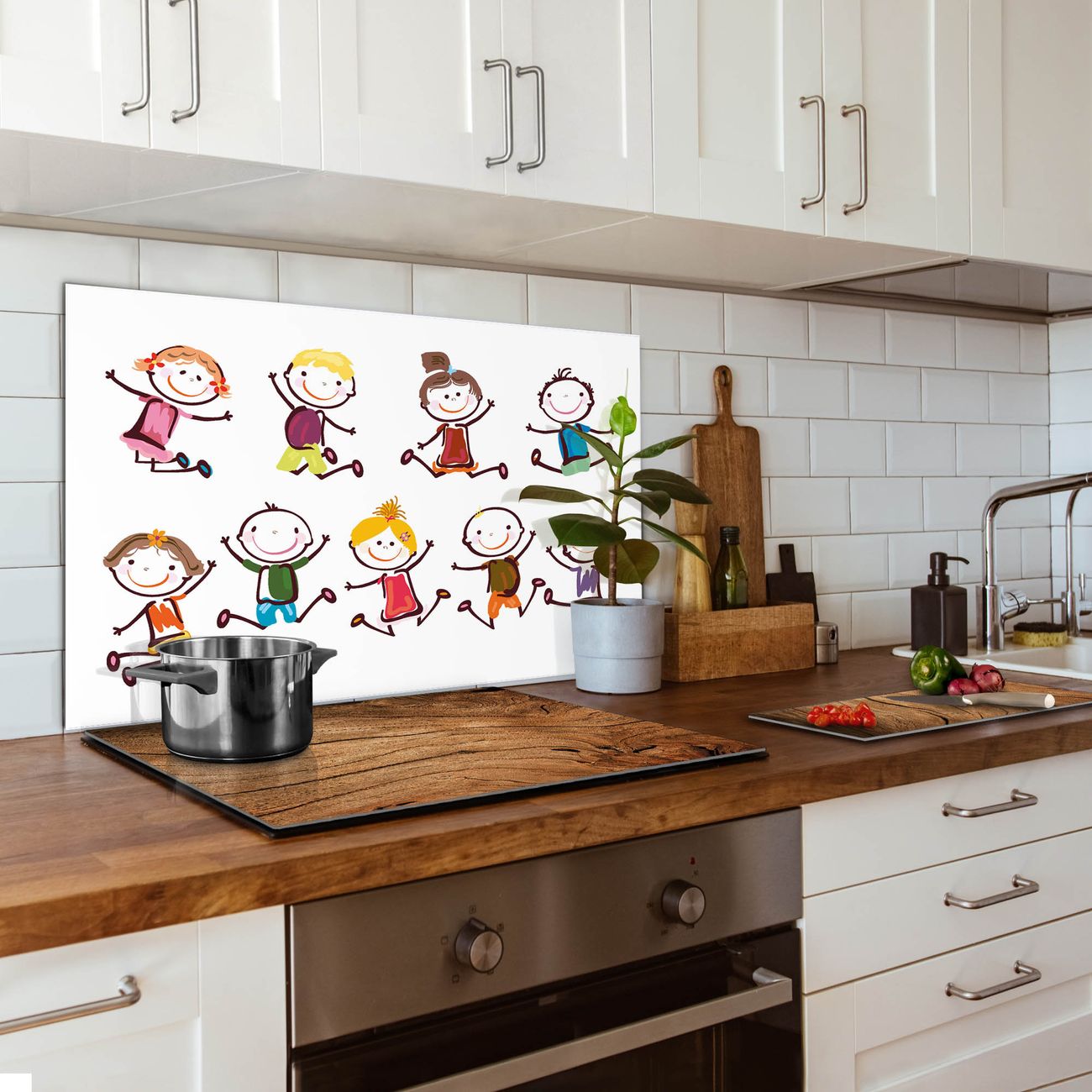 Die banjado Glas Küchenrückwand in verschiedenen Größen mit Motiv Happy Kids schützt Ihre Küchenfliesen vor Fettspritzern oder Wasserflecken. Der Spritzschutz ist gleichzeitig magnetisch und hält Ihre Rezepte oder Einkaufslisten. 4 Neodym-Magnete und 1 Kreidestift liegen bereits bei. Leuchtende Motive und hochwertiges Material machen den Spritzschutz zum Designobjekt. Das dekorative Glasbild gibt Ihrer Küche ein individuelles Erscheinungsbild. Abgerundete Kanten und Sicherheitsglas sorgen für einen sicheren Einsatz.
