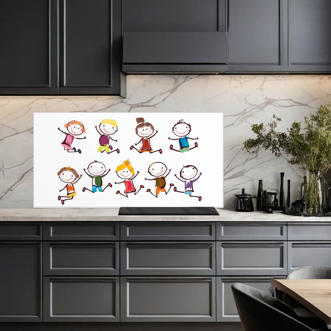 Die banjado Glas Küchenrückwand in verschiedenen Größen mit Motiv Happy Kids schützt Ihre Küchenfliesen vor Fettspritzern oder Wasserflecken. Der Spritzschutz ist gleichzeitig magnetisch und hält Ihre Rezepte oder Einkaufslisten. 4 Neodym-Magnete und 1 Kreidestift liegen bereits bei. Leuchtende Motive und hochwertiges Material machen den Spritzschutz zum Designobjekt. Das dekorative Glasbild gibt Ihrer Küche ein individuelles Erscheinungsbild. Abgerundete Kanten und Sicherheitsglas sorgen für einen sicheren Einsatz.