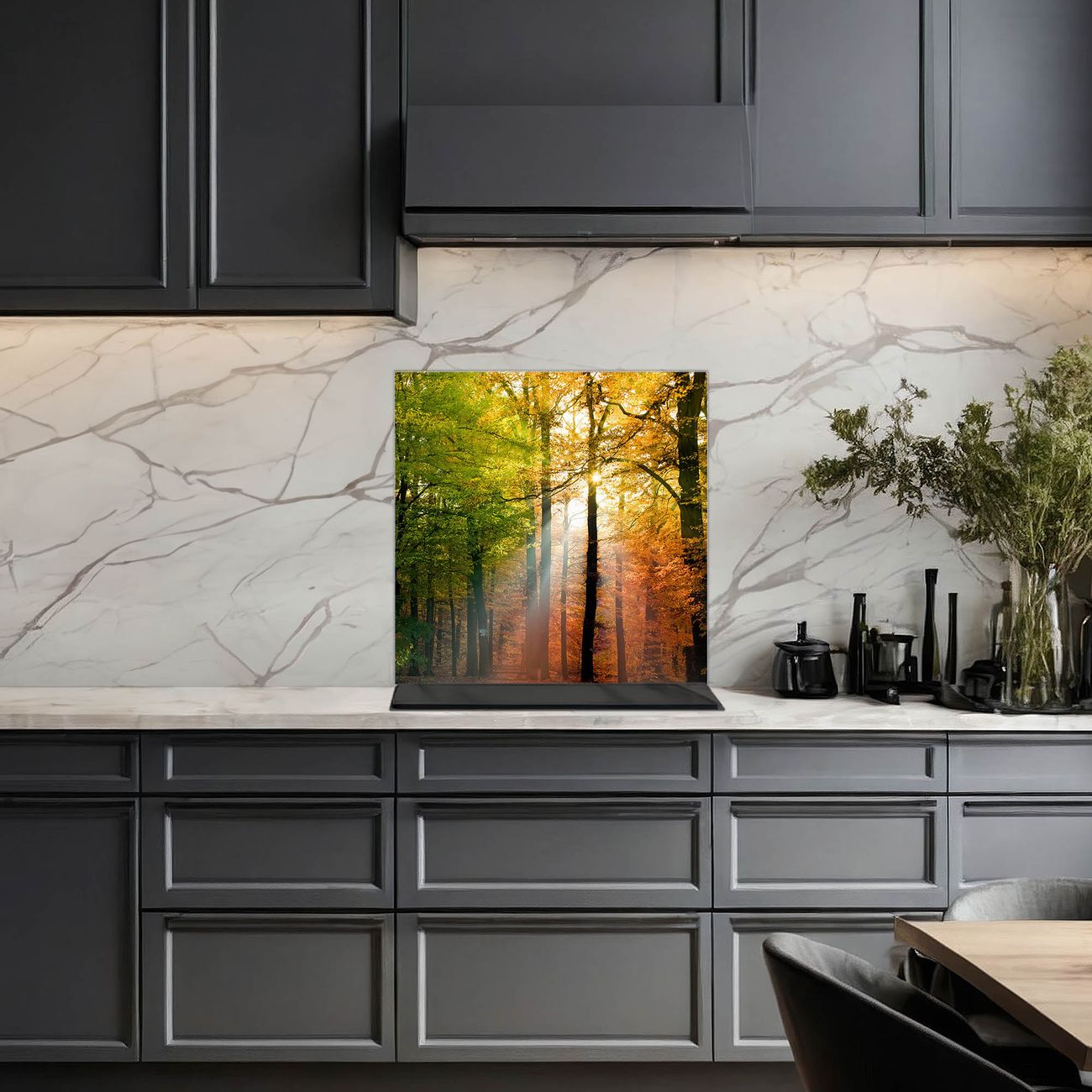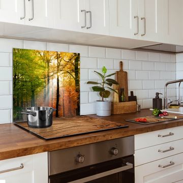 Die banjado Glas Küchenrückwand in verschiedenen Größen mit Motiv Herbstwald schützt Ihre Küchenfliesen vor Fettspritzern oder Wasserflecken. Der Spritzschutz ist gleichzeitig magnetisch und hält Ihre Rezepte oder Einkaufslisten. 4 Neodym-Magnete und 1 Kreidestift liegen bereits bei. Leuchtende Motive und hochwertiges Material machen den Spritzschutz zum Designobjekt. Das dekorative Glasbild gibt Ihrer Küche ein individuelles Erscheinungsbild. Abgerundete Kanten und Sicherheitsglas sorgen für einen sicheren Einsatz.