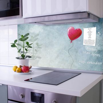 Die banjado Glas Küchenrückwand in verschiedenen Größen mit Motiv Herzballon schützt Ihre Küchenfliesen vor Fettspritzern oder Wasserflecken. Der Spritzschutz ist gleichzeitig magnetisch und hält Ihre Rezepte oder Einkaufslisten. 4 Neodym-Magnete und 1 Kreidestift liegen bereits bei. Leuchtende Motive und hochwertiges Material machen den Spritzschutz zum Designobjekt. Das dekorative Glasbild gibt Ihrer Küche ein individuelles Erscheinungsbild. Abgerundete Kanten und Sicherheitsglas sorgen für einen sicheren Einsatz.
