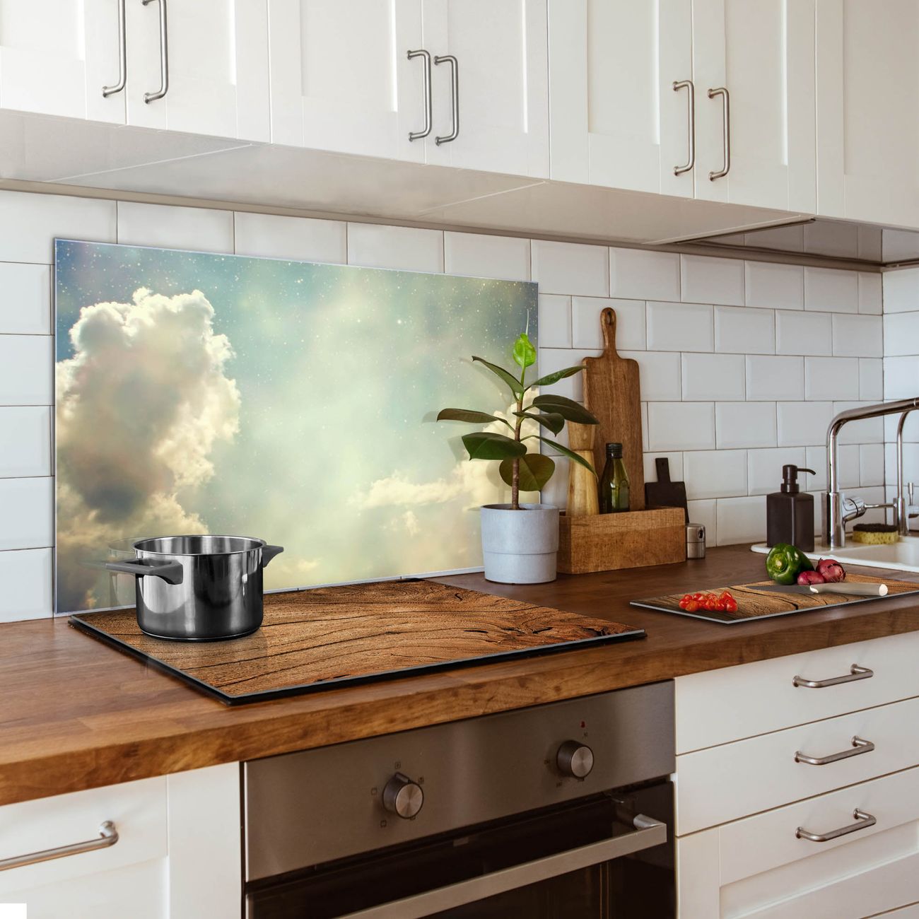 Die banjado Glas Küchenrückwand in verschiedenen Größen mit Motiv Himmel Vintage schützt Ihre Küchenfliesen vor Fettspritzern oder Wasserflecken. Der Spritzschutz ist gleichzeitig magnetisch und hält Ihre Rezepte oder Einkaufslisten. 4 Neodym-Magnete und 1 Kreidestift liegen bereits bei. Leuchtende Motive und hochwertiges Material machen den Spritzschutz zum Designobjekt. Das dekorative Glasbild gibt Ihrer Küche ein individuelles Erscheinungsbild. Abgerundete Kanten und Sicherheitsglas sorgen für einen sicheren Einsatz.