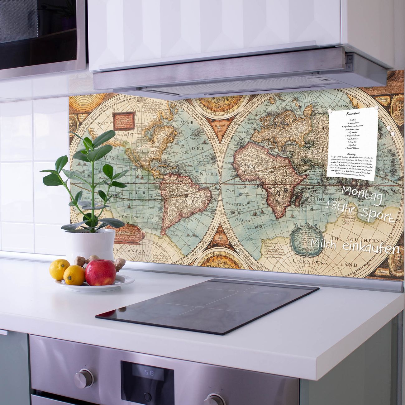 Küchenrückwand Glas Motiv Historische Weltkarte