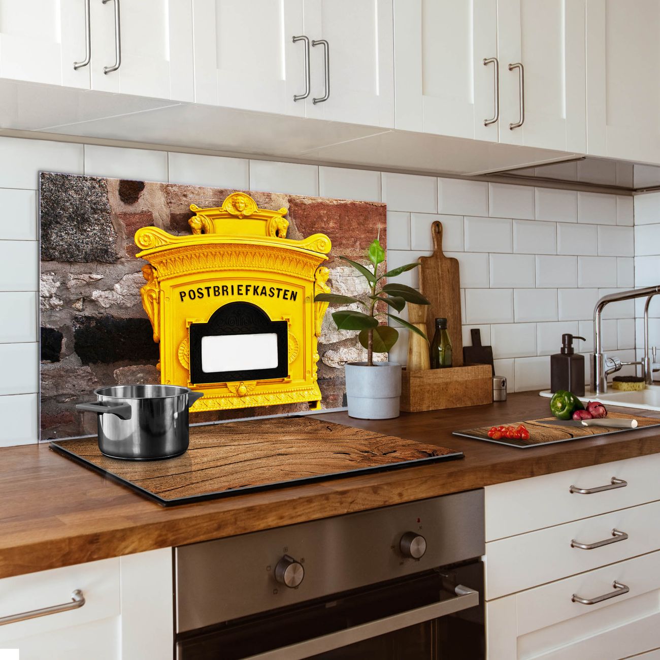 Die banjado Glas Küchenrückwand in verschiedenen Größen mit Motiv Historischer Postkasten schützt Ihre Küchenfliesen vor Fettspritzern oder Wasserflecken. Der Spritzschutz ist gleichzeitig magnetisch und hält Ihre Rezepte oder Einkaufslisten. 4 Neodym-Magnete und 1 Kreidestift liegen bereits bei. Leuchtende Motive und hochwertiges Material machen den Spritzschutz zum Designobjekt. Das dekorative Glasbild gibt Ihrer Küche ein individuelles Erscheinungsbild. Abgerundete Kanten und Sicherheitsglas sorgen für einen sicheren Einsatz.
