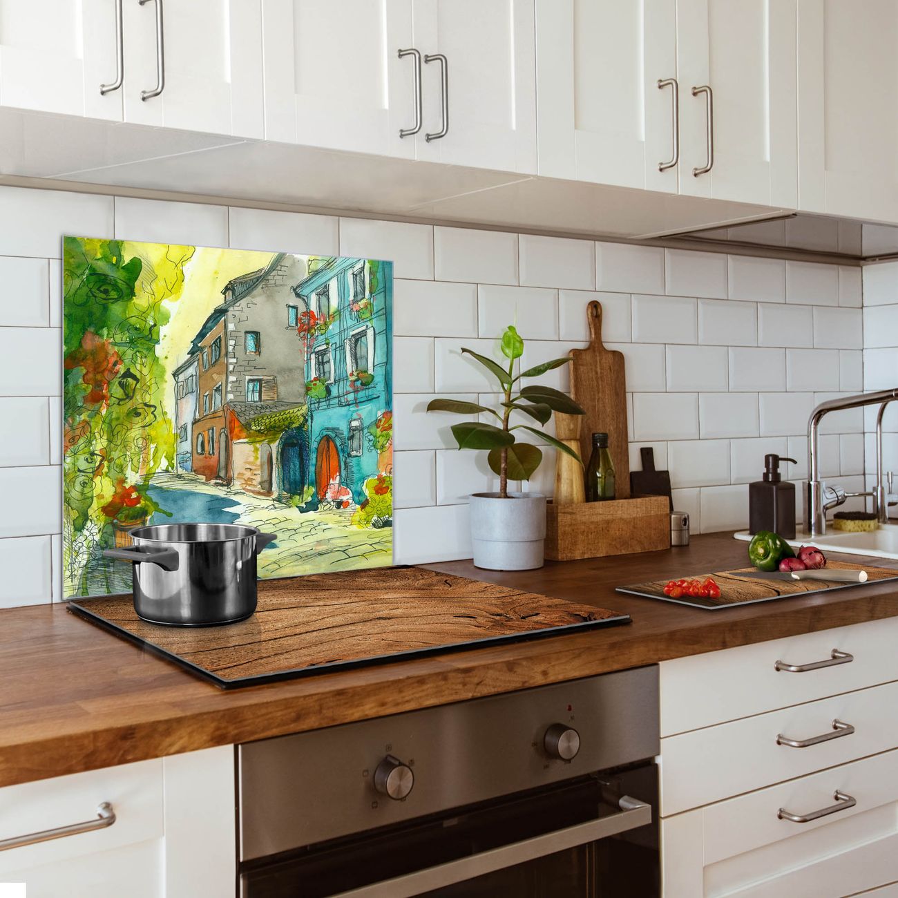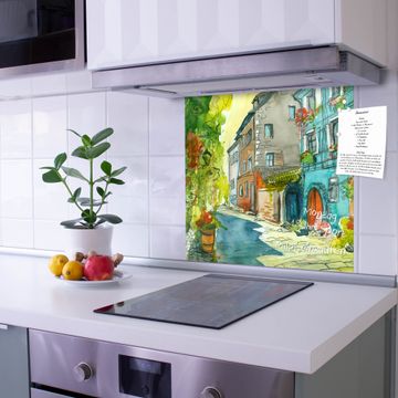 Die banjado Glas Küchenrückwand in verschiedenen Größen mit Motiv Historischer Stadtkern schützt Ihre Küchenfliesen vor Fettspritzern oder Wasserflecken. Der Spritzschutz ist gleichzeitig magnetisch und hält Ihre Rezepte oder Einkaufslisten. 4 Neodym-Magnete und 1 Kreidestift liegen bereits bei. Leuchtende Motive und hochwertiges Material machen den Spritzschutz zum Designobjekt. Das dekorative Glasbild gibt Ihrer Küche ein individuelles Erscheinungsbild. Abgerundete Kanten und Sicherheitsglas sorgen für einen sicheren Einsatz.
