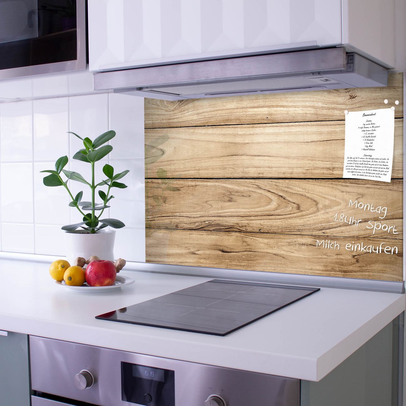 Die banjado Glas Küchenrückwand in verschiedenen Größen mit Motiv Holzplanken schützt Ihre Küchenfliesen vor Fettspritzern oder Wasserflecken. Der Spritzschutz ist gleichzeitig magnetisch und hält Ihre Rezepte oder Einkaufslisten. 4 Neodym-Magnete und 1 Kreidestift liegen bereits bei. Leuchtende Motive und hochwertiges Material machen den Spritzschutz zum Designobjekt. Das dekorative Glasbild gibt Ihrer Küche ein individuelles Erscheinungsbild. Abgerundete Kanten und Sicherheitsglas sorgen für einen sicheren Einsatz.