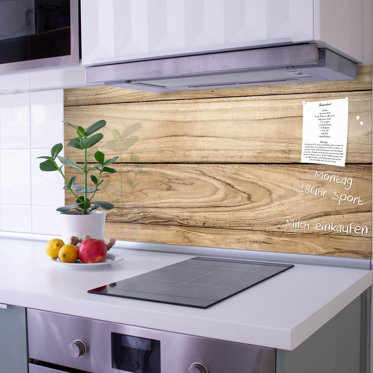 Die banjado Glas Küchenrückwand in verschiedenen Größen mit Motiv Holzplanken schützt Ihre Küchenfliesen vor Fettspritzern oder Wasserflecken. Der Spritzschutz ist gleichzeitig magnetisch und hält Ihre Rezepte oder Einkaufslisten. 4 Neodym-Magnete und 1 Kreidestift liegen bereits bei. Leuchtende Motive und hochwertiges Material machen den Spritzschutz zum Designobjekt. Das dekorative Glasbild gibt Ihrer Küche ein individuelles Erscheinungsbild. Abgerundete Kanten und Sicherheitsglas sorgen für einen sicheren Einsatz.