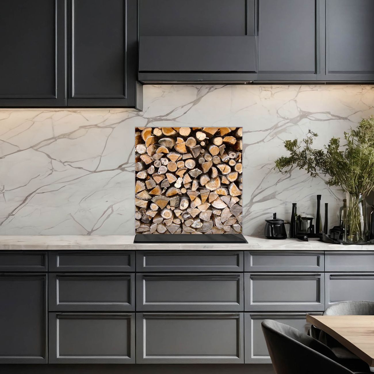 Küchenrückwand Glas Motiv Holzstapel