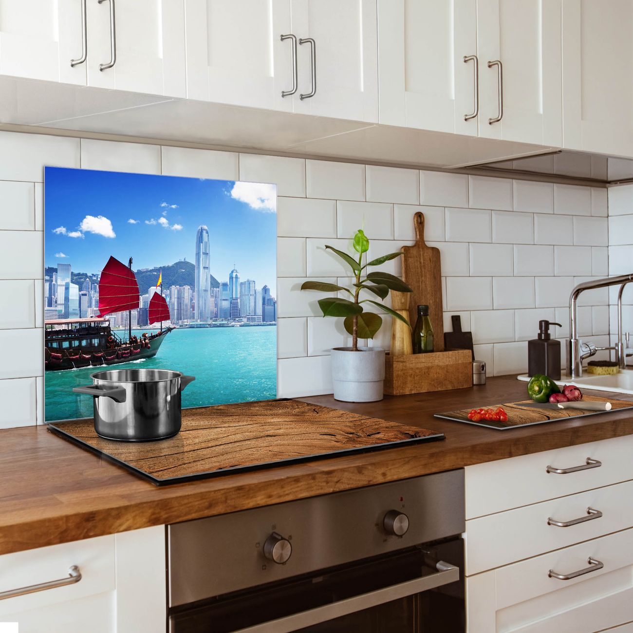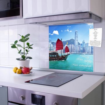 Die banjado Glas Küchenrückwand in verschiedenen Größen mit Motiv Hong Kong schützt Ihre Küchenfliesen vor Fettspritzern oder Wasserflecken. Der Spritzschutz ist gleichzeitig magnetisch und hält Ihre Rezepte oder Einkaufslisten. 4 Neodym-Magnete und 1 Kreidestift liegen bereits bei. Leuchtende Motive und hochwertiges Material machen den Spritzschutz zum Designobjekt. Das dekorative Glasbild gibt Ihrer Küche ein individuelles Erscheinungsbild. Abgerundete Kanten und Sicherheitsglas sorgen für einen sicheren Einsatz.
