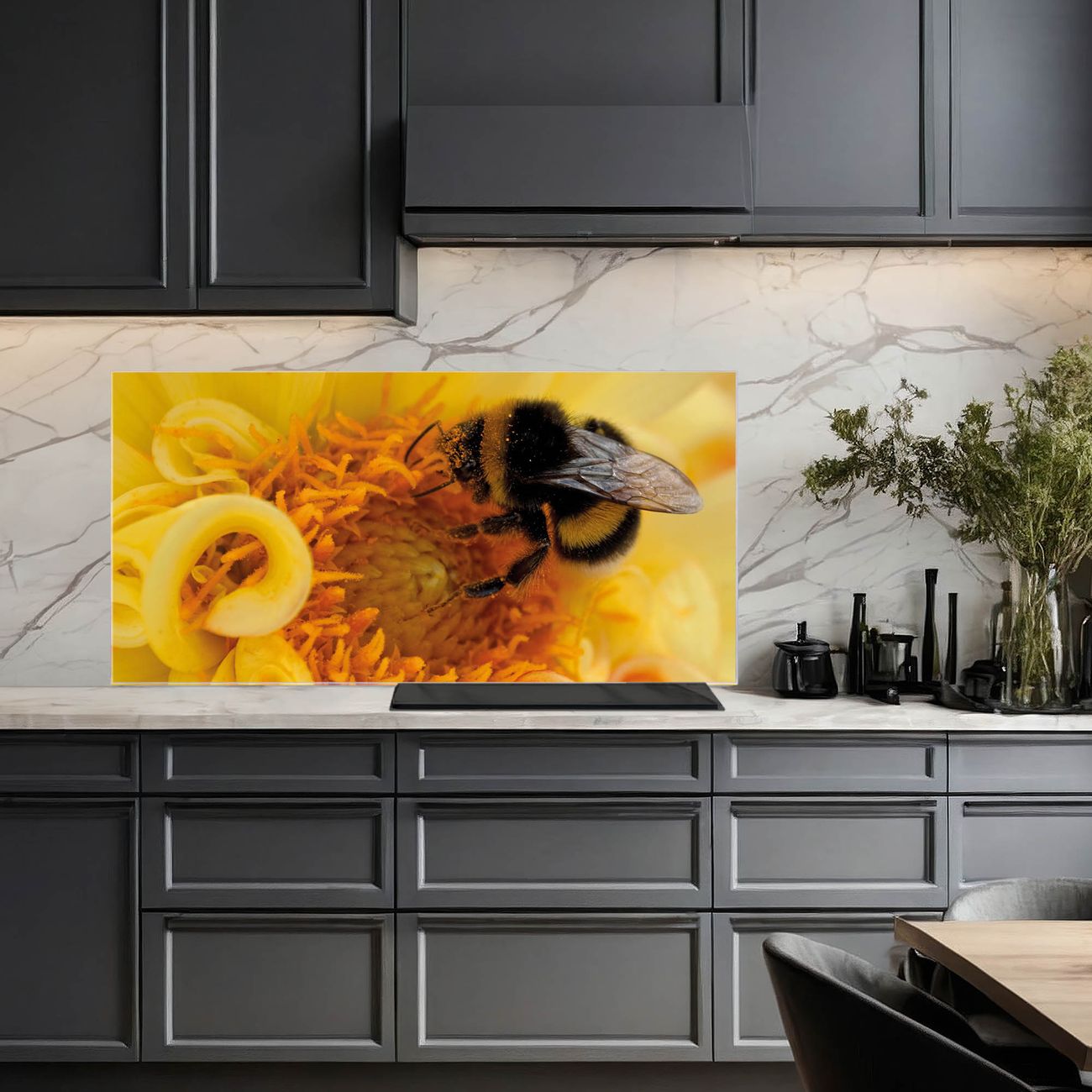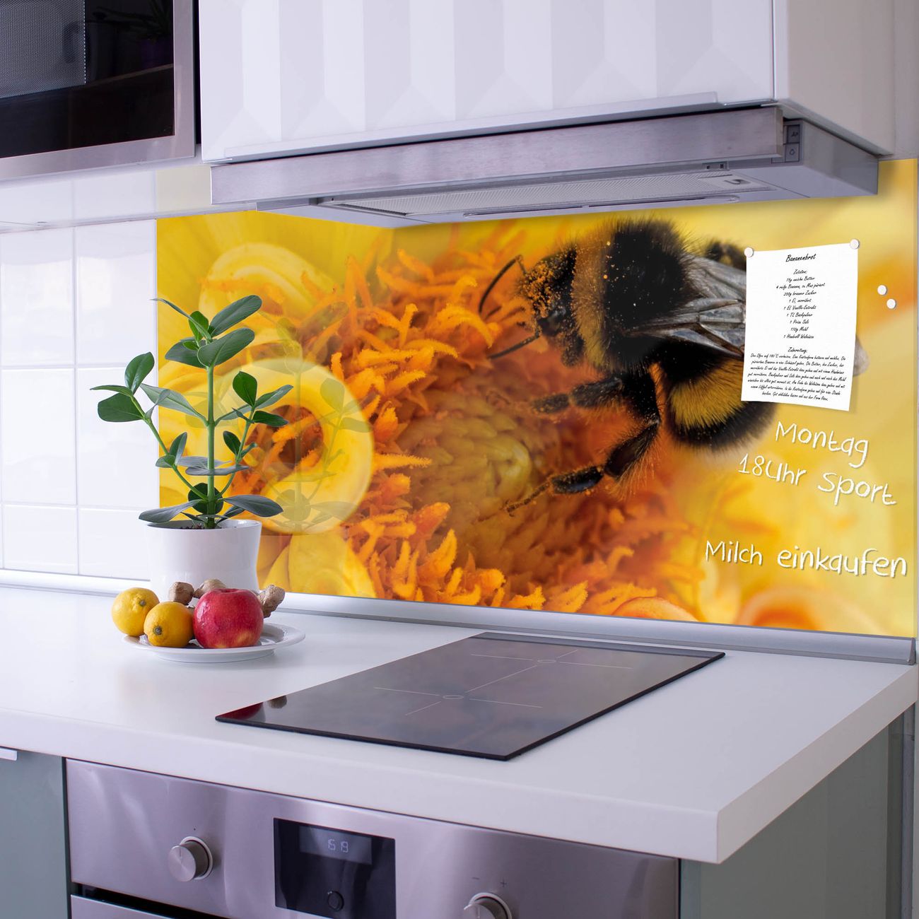 Die banjado Glas Küchenrückwand in verschiedenen Größen mit Motiv Hummel schützt Ihre Küchenfliesen vor Fettspritzern oder Wasserflecken. Der Spritzschutz ist gleichzeitig magnetisch und hält Ihre Rezepte oder Einkaufslisten. 4 Neodym-Magnete und 1 Kreidestift liegen bereits bei. Leuchtende Motive und hochwertiges Material machen den Spritzschutz zum Designobjekt. Das dekorative Glasbild gibt Ihrer Küche ein individuelles Erscheinungsbild. Abgerundete Kanten und Sicherheitsglas sorgen für einen sicheren Einsatz.