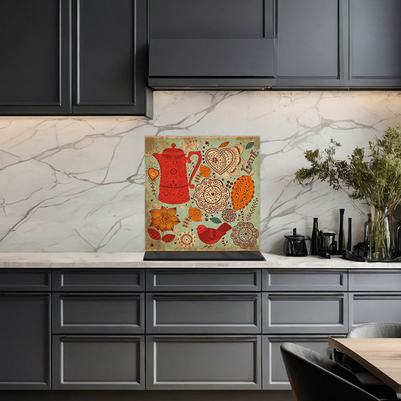 Die banjado Glas Küchenrückwand in verschiedenen Größen mit Motiv Indischer Kaffee schützt Ihre Küchenfliesen vor Fettspritzern oder Wasserflecken. Der Spritzschutz ist gleichzeitig magnetisch und hält Ihre Rezepte oder Einkaufslisten. 4 Neodym-Magnete und 1 Kreidestift liegen bereits bei. Leuchtende Motive und hochwertiges Material machen den Spritzschutz zum Designobjekt. Das dekorative Glasbild gibt Ihrer Küche ein individuelles Erscheinungsbild. Abgerundete Kanten und Sicherheitsglas sorgen für einen sicheren Einsatz.