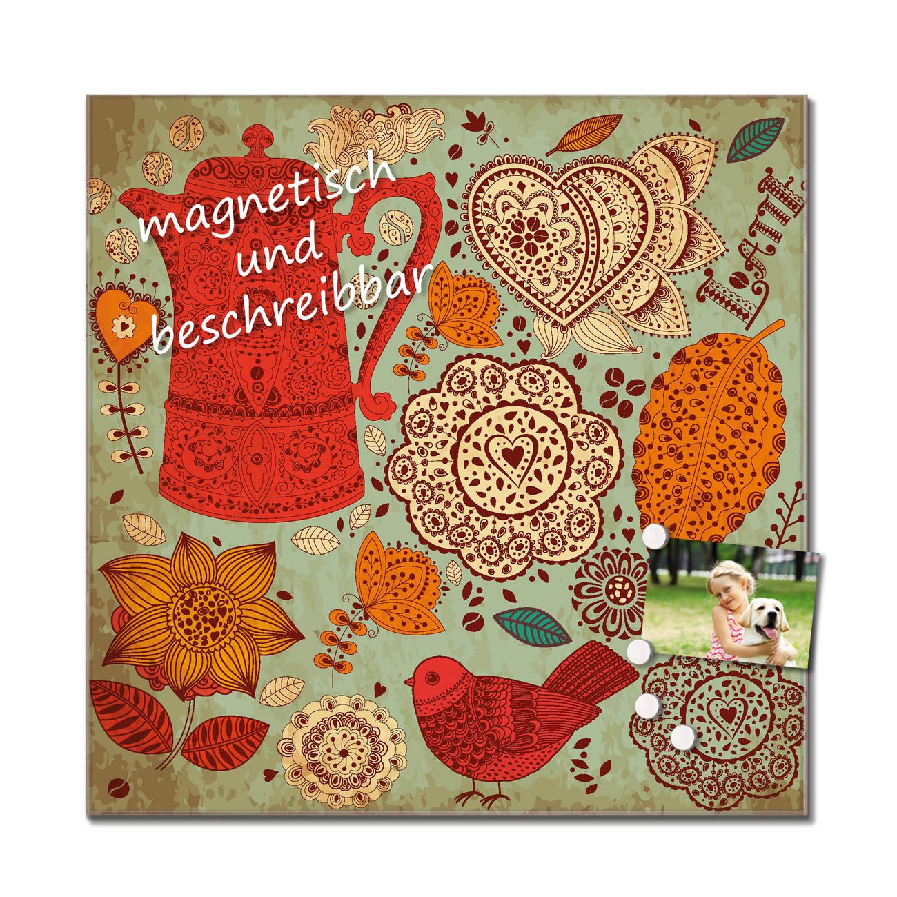 Die Küchenrückwand ist eine elegante Mehrzwecktafel: als Spritzschutz hinter Herd oder Waschbecken, hält Notizen wie ein Memoboard, ist beschreibbar mit Kreidestiften oder Whiteboard-Markern, sieht umwerfend als Glasbild aus. Sie besteht aus gehärtetem Glas, die Rückwand aus einem magnetischen Stahlblech. Durch die superflache Bauweise haben Sie die Wahl aus einer Vielzahl von Befestigungsmöglichkeiten. Sie können die Küchenrückwand mit einem Montagekleber superflach an die Wand kleben oder Sie wählen eines unserer passenden Befestigungssets, welches eine optimale Montage garantiert. Die Küchenrückwand besteht aus zertifiziertem Sicherheitsglas. Durch die mitgelieferten 4 Neodym-Magnete ist Ihre Glas Magnettafel sofort einsatzbereit.