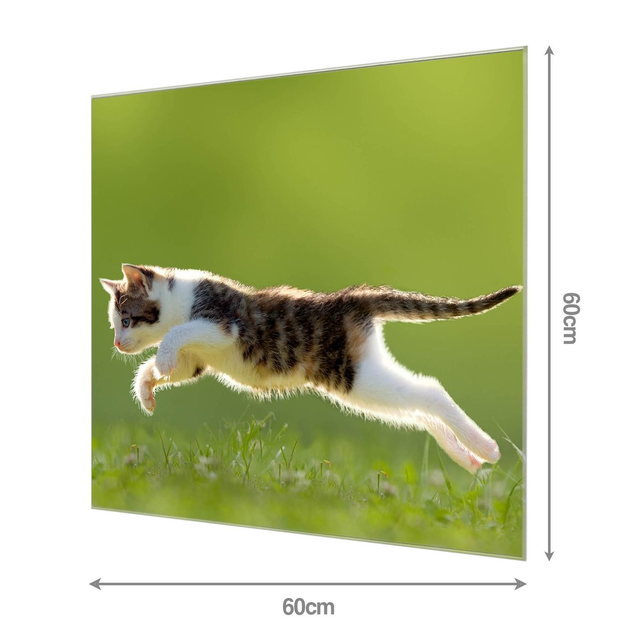Material  4mm Sicherheitsglas mit Metallrückwand Eigenschaften  beschreibbar, magnetisch, kratzfest Maße  60x60x0,6cm, 5,4 kg schwer Motiv  Nummer 10729 Jagende Katze Zubehör  inklusive 4 Neodym-Magnete