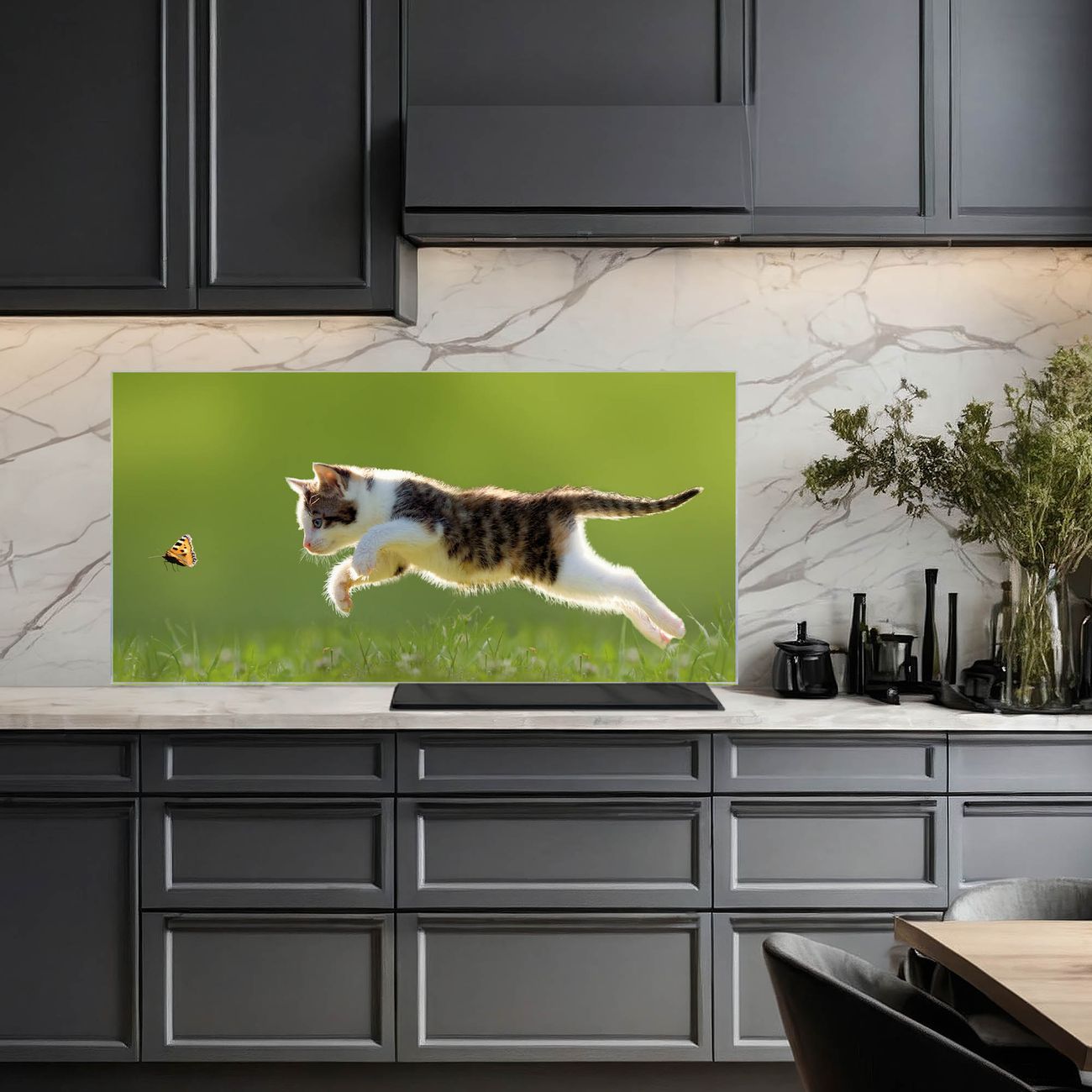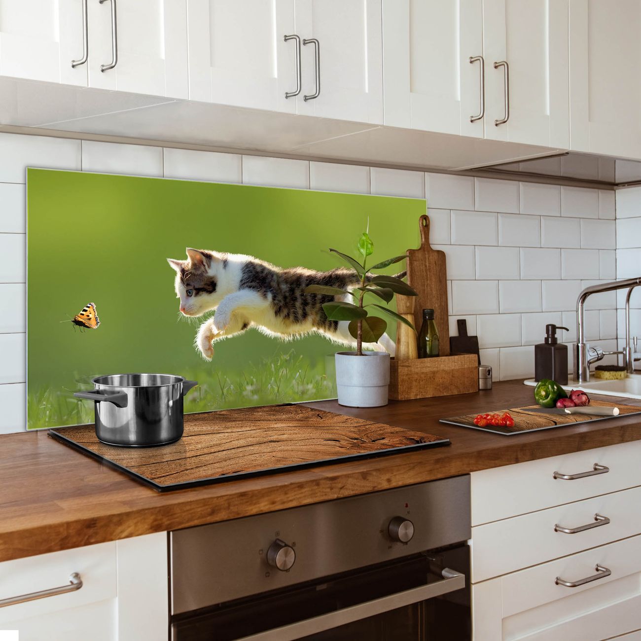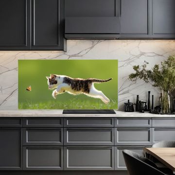 Küchenrückwand Glas Motiv Jagende Katze