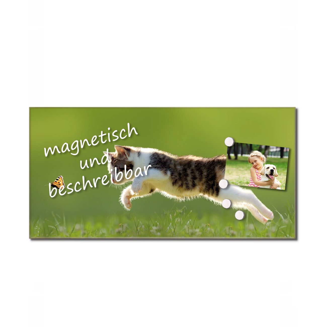 Bitte beachten Sie, dass ausschließlich spezielle Magnete an der Glastafel haften! Wir empfehlen banjado Neodym Magnete, diese sind durch uns auf Wirksamkeit geprüft.