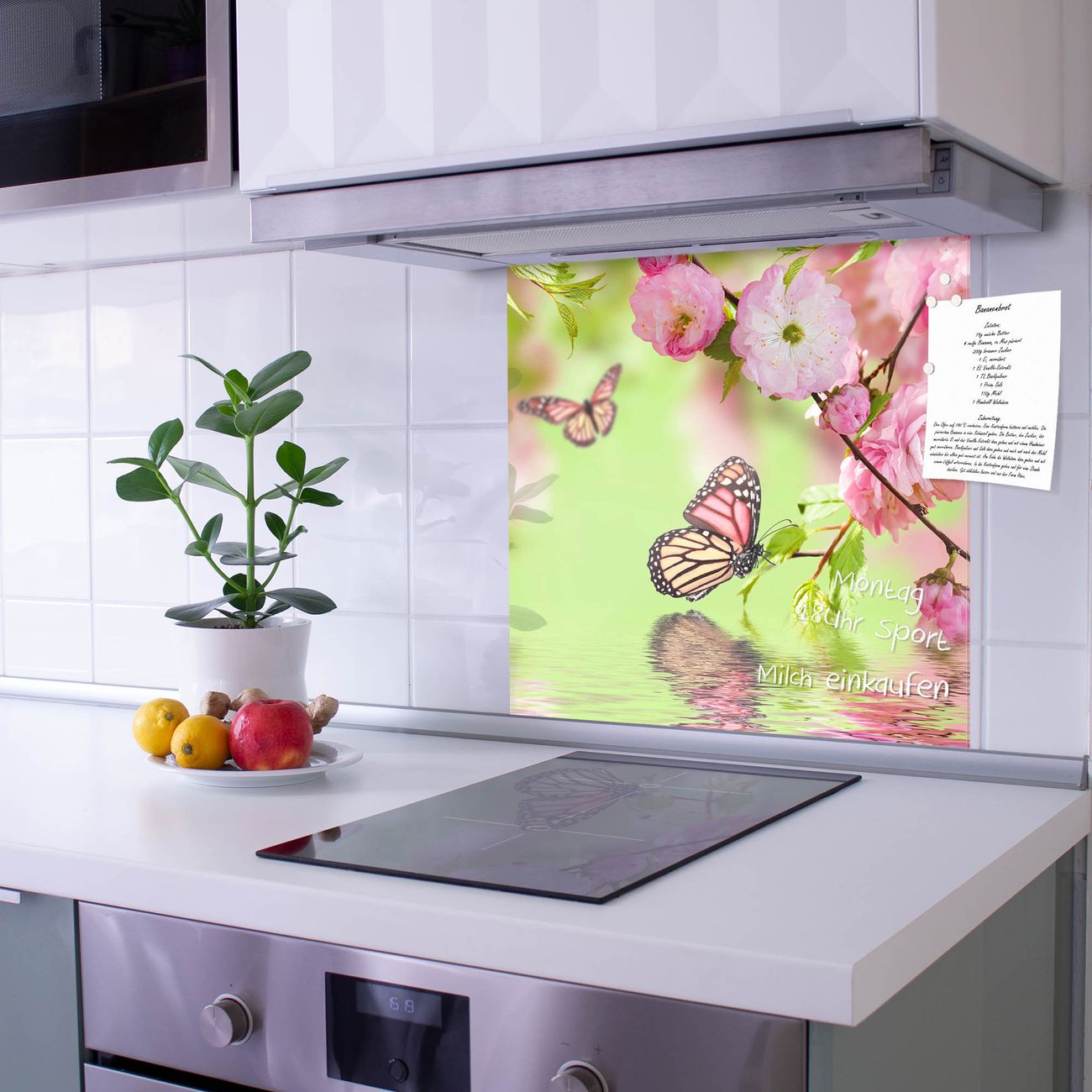 Die Küchenrückwand ist eine elegante Mehrzwecktafel: als Spritzschutz hinter Herd oder Waschbecken, hält Notizen wie ein Memoboard, ist beschreibbar mit Kreidestiften oder Whiteboard-Markern, sieht umwerfend als Glasbild aus. Sie besteht aus gehärtetem Glas, die Rückwand aus einem magnetischen Stahlblech. Durch die superflache Bauweise haben Sie die Wahl aus einer Vielzahl von Befestigungsmöglichkeiten. Sie können die Küchenrückwand mit einem Montagekleber superflach an die Wand kleben oder Sie wählen eines unserer passenden Befestigungssets, welches eine optimale Montage garantiert. Die Küchenrückwand besteht aus zertifiziertem Sicherheitsglas. Durch die mitgelieferten 4 Neodym-Magnete ist Ihre Glas Magnettafel sofort einsatzbereit.