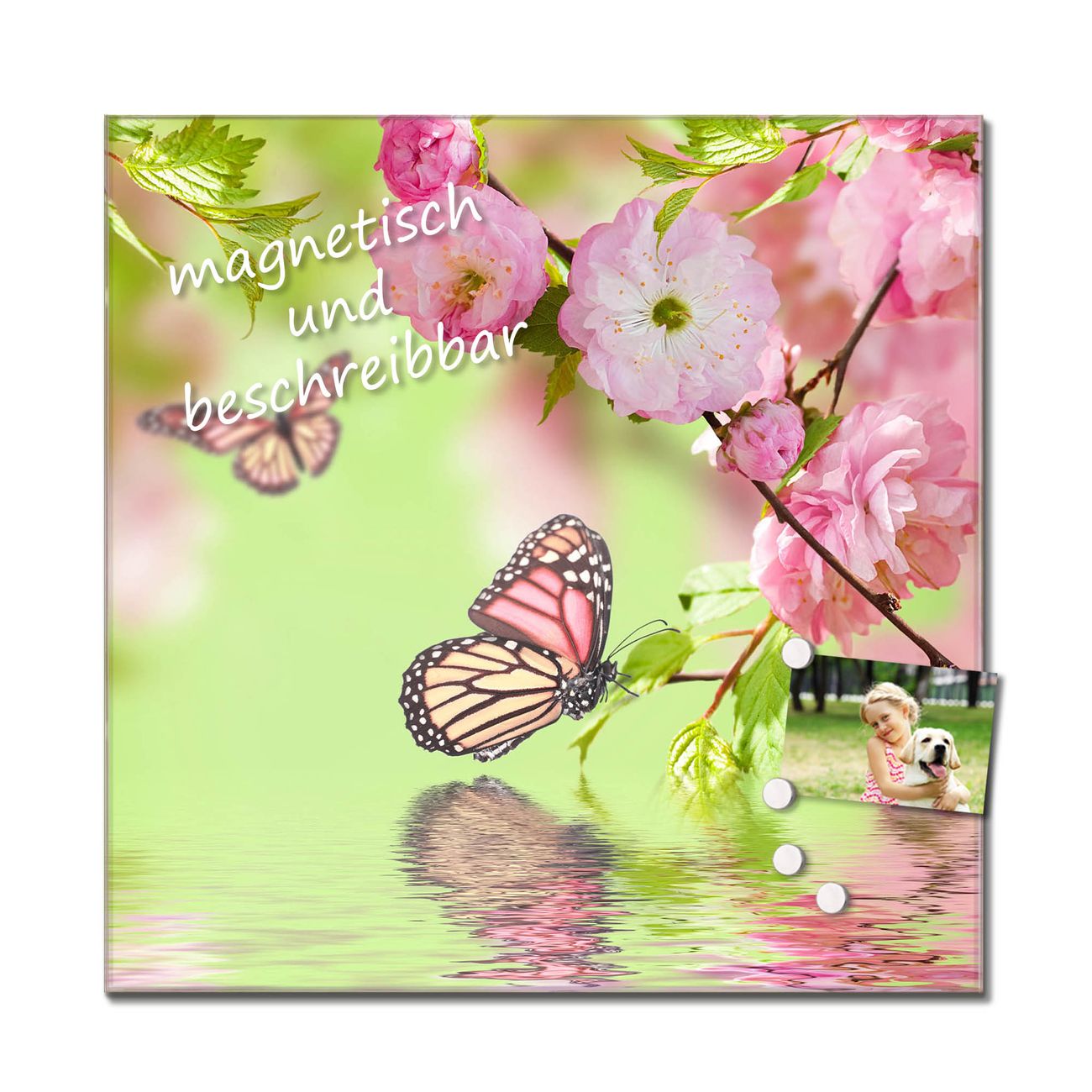 Bitte beachten Sie, dass ausschließlich spezielle Magnete an der Glastafel haften! Wir empfehlen banjado Neodym Magnete, diese sind durch uns auf Wirksamkeit geprüft.