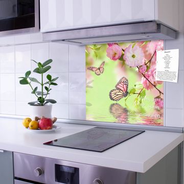 Die banjado Glas Küchenrückwand in verschiedenen Größen mit Motiv Japanische Kirschblüte schützt Ihre Küchenfliesen vor Fettspritzern oder Wasserflecken. Der Spritzschutz ist gleichzeitig magnetisch und hält Ihre Rezepte oder Einkaufslisten. 4 Neodym-Magnete und 1 Kreidestift liegen bereits bei. Leuchtende Motive und hochwertiges Material machen den Spritzschutz zum Designobjekt. Das dekorative Glasbild gibt Ihrer Küche ein individuelles Erscheinungsbild. Abgerundete Kanten und Sicherheitsglas sorgen für einen sicheren Einsatz.