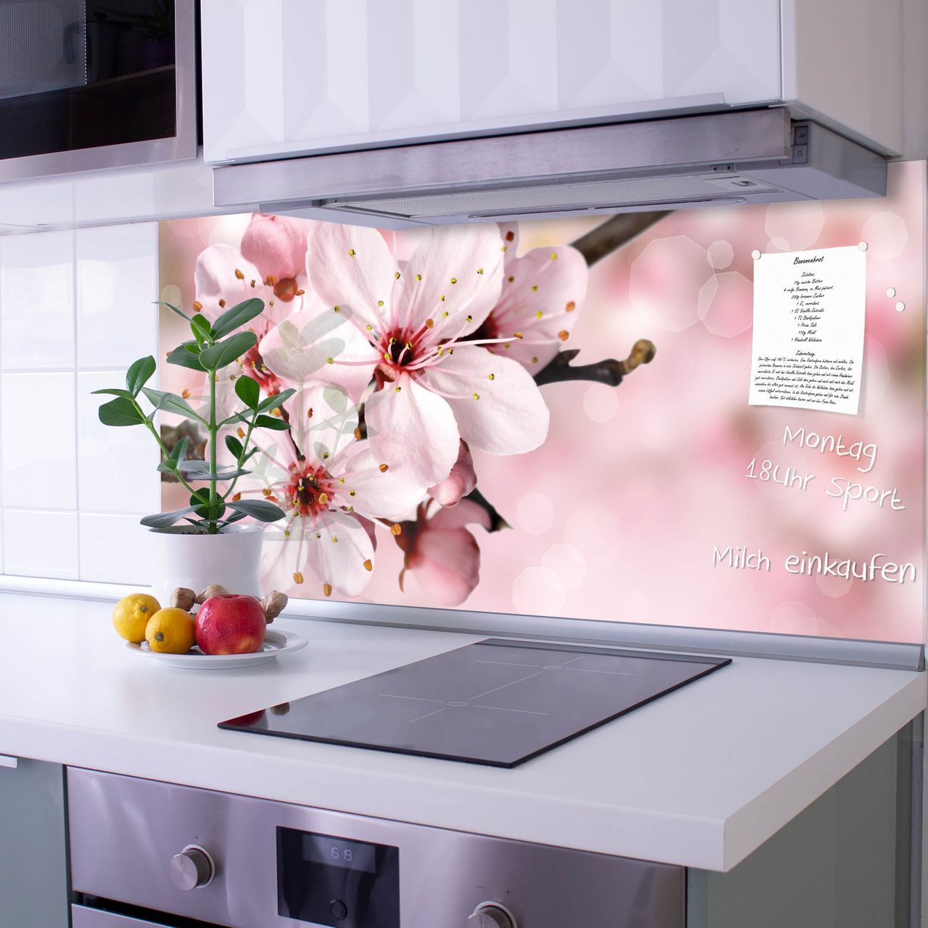 Die banjado Glas Küchenrückwand in verschiedenen Größen mit Motiv Japanische Kirsche schützt Ihre Küchenfliesen vor Fettspritzern oder Wasserflecken. Der Spritzschutz ist gleichzeitig magnetisch und hält Ihre Rezepte oder Einkaufslisten. 4 Neodym-Magnete und 1 Kreidestift liegen bereits bei. Leuchtende Motive und hochwertiges Material machen den Spritzschutz zum Designobjekt. Das dekorative Glasbild gibt Ihrer Küche ein individuelles Erscheinungsbild. Abgerundete Kanten und Sicherheitsglas sorgen für einen sicheren Einsatz.