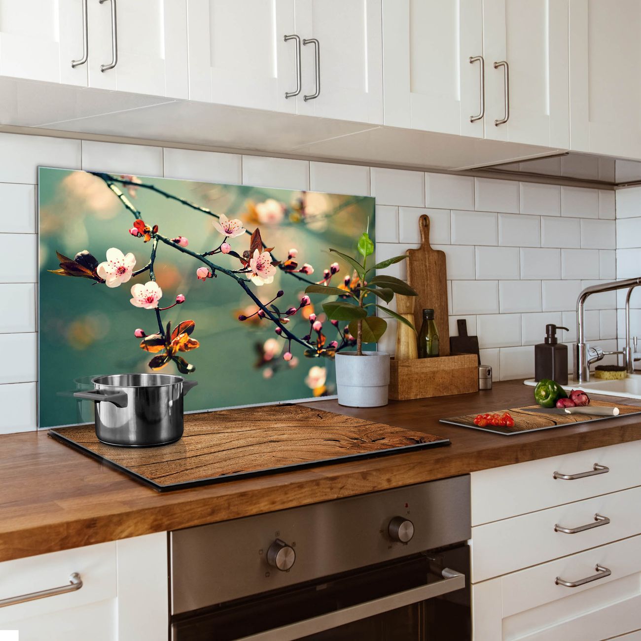 Die banjado Glas Küchenrückwand in verschiedenen Größen mit Motiv Japankirsche schützt Ihre Küchenfliesen vor Fettspritzern oder Wasserflecken. Der Spritzschutz ist gleichzeitig magnetisch und hält Ihre Rezepte oder Einkaufslisten. 4 Neodym-Magnete und 1 Kreidestift liegen bereits bei. Leuchtende Motive und hochwertiges Material machen den Spritzschutz zum Designobjekt. Das dekorative Glasbild gibt Ihrer Küche ein individuelles Erscheinungsbild. Abgerundete Kanten und Sicherheitsglas sorgen für einen sicheren Einsatz.