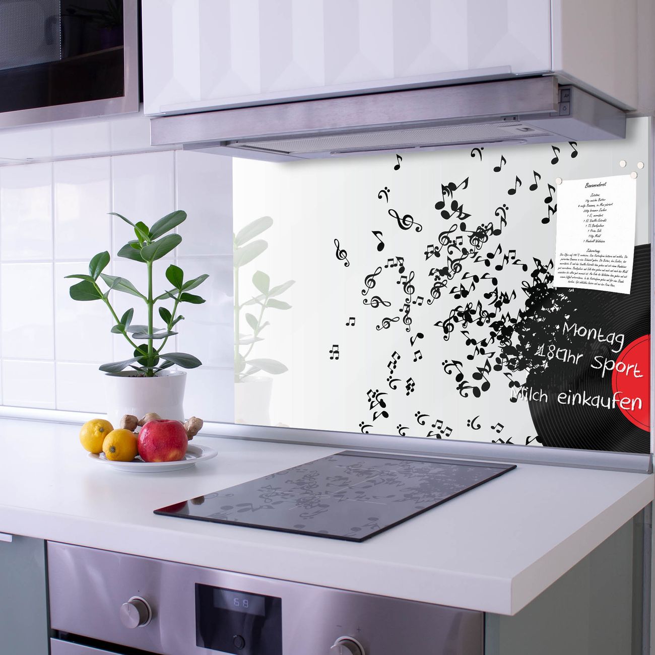Die Küchenrückwand ist eine elegante Mehrzwecktafel: als Spritzschutz hinter Herd oder Waschbecken, hält Notizen wie ein Memoboard, ist beschreibbar mit Kreidestiften oder Whiteboard-Markern, sieht umwerfend als Glasbild aus. Sie besteht aus gehärtetem Glas, die Rückwand aus einem magnetischen Stahlblech. Durch die superflache Bauweise haben Sie die Wahl aus einer Vielzahl von Befestigungsmöglichkeiten. Sie können die Küchenrückwand mit einem Montagekleber superflach an die Wand kleben oder Sie wählen eines unserer passenden Befestigungssets, welches eine optimale Montage garantiert. Die Küchenrückwand besteht aus zertifiziertem Sicherheitsglas. Durch die mitgelieferten 4 Neodym-Magnete ist Ihre Glas Magnettafel sofort einsatzbereit.